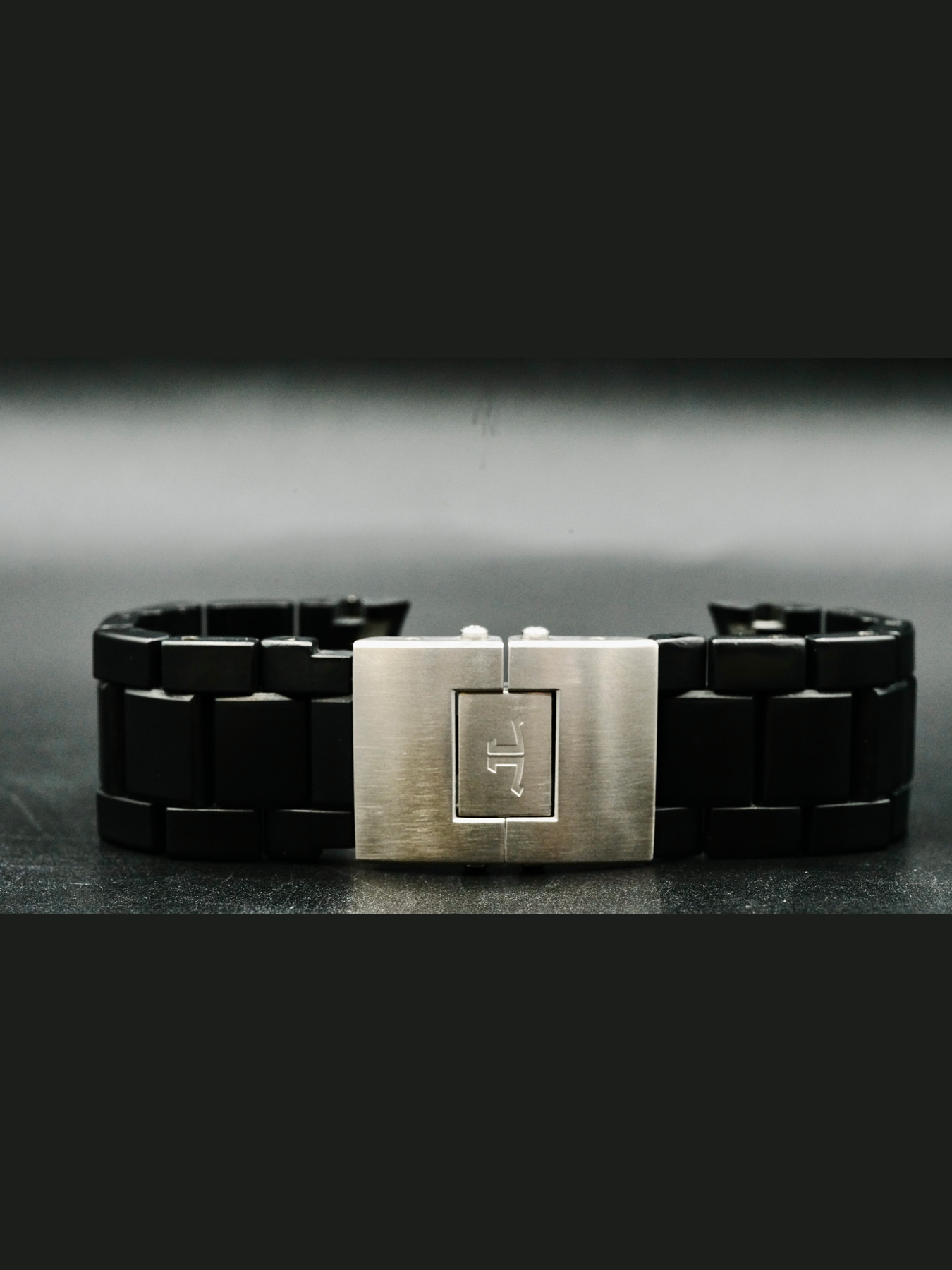 Powered by a Mechanical Automatic Movement, Caliber 975D. Water resistance up to 100 meters.