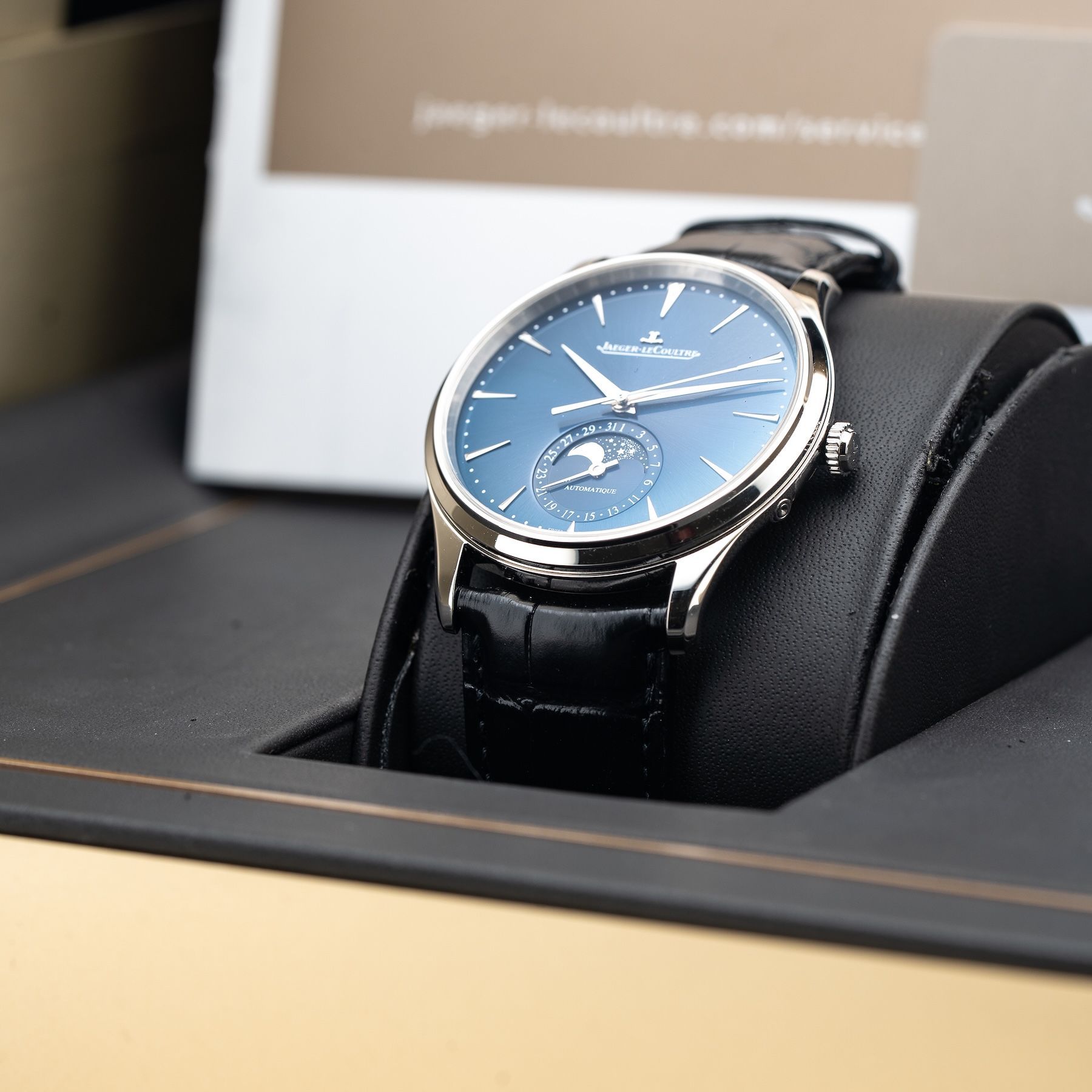 This Jaeger Lecoultre Q1368480 Master Ultra Thin Moon is in GREAT condition, it has boxes, papers and warranty card dated 2/2/2023, missing pusher. This watch has been fully authenticated and certified by Exquisite Timepieces. Please note, the photos shown are of the actual watch you will receive.