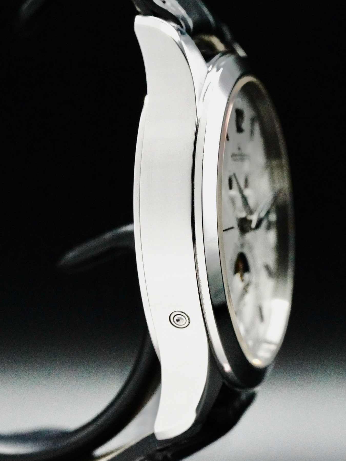 This watch features a 39 mm stainless steel case on leather strap. This watch also sports a meteorite grey dial. Powered by a self-winding automatic movement. Water resistance up to 50 meters.