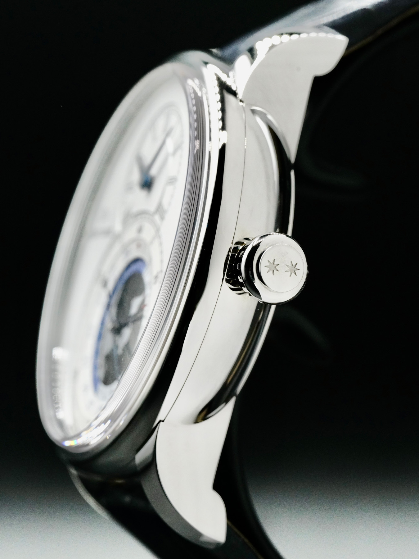 Black onyx dial, 18-karat white gold applied ring. Stainless steel case. Local hours and minutes indicators at 12 o'clock. Reference time disc and pointer-type date display at 6 o'clock. Reference time disc with black treatment and silver coloured world map. Self-winding mechanical movement. Power reserve of 65 hours. Diameter 43 mm.
