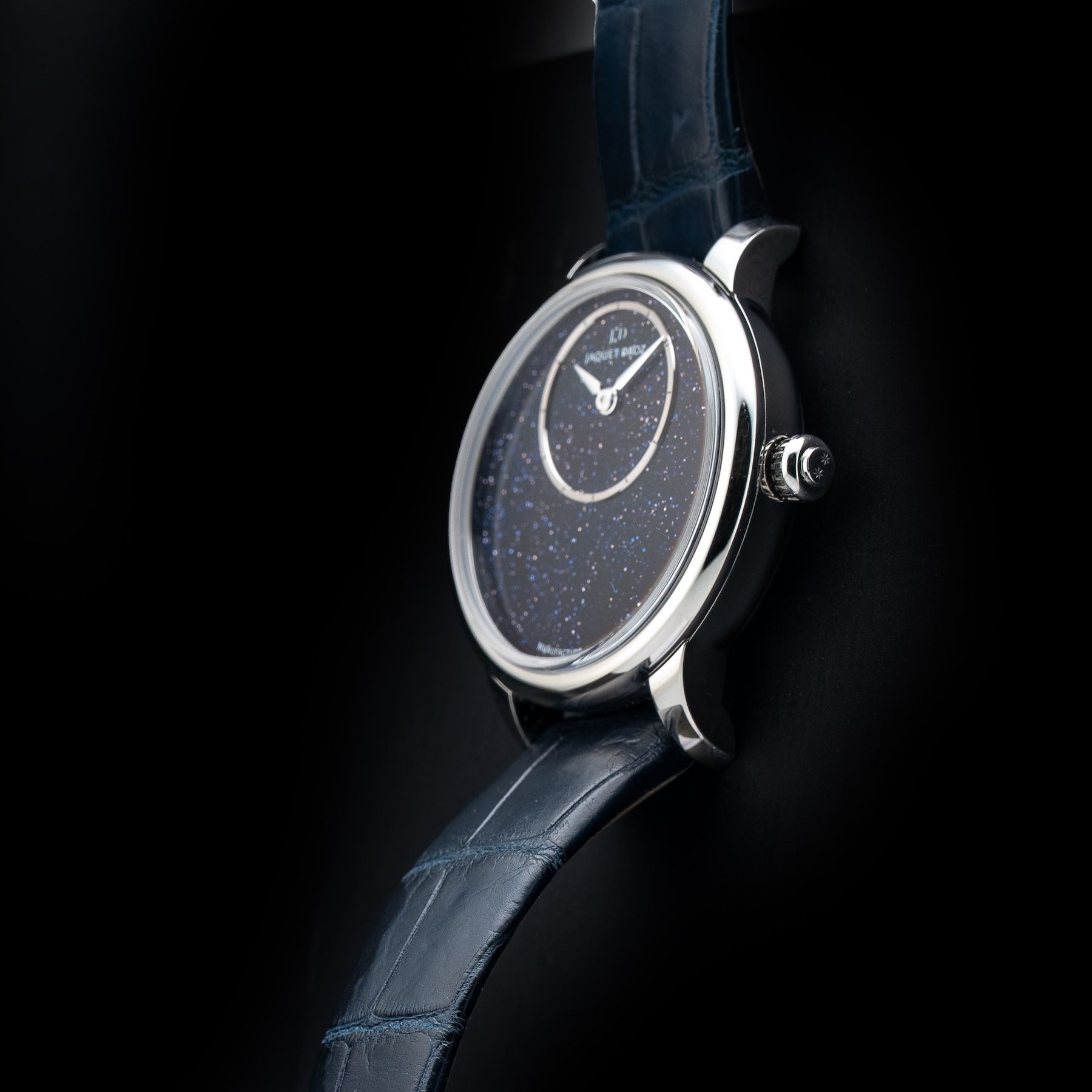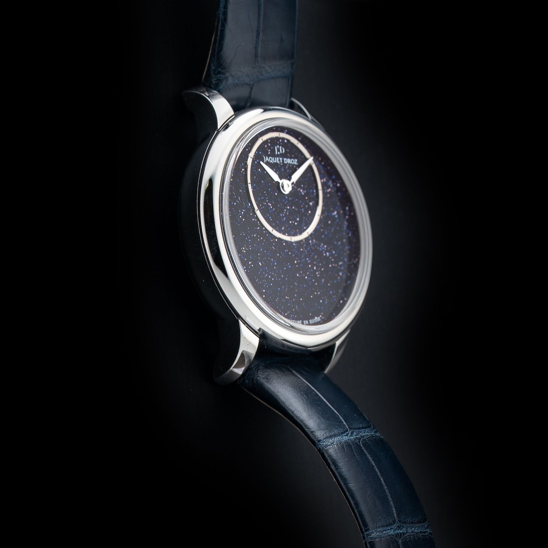 This Jaquet Droz Petite Heure Minute 35mm Aventurine J005000570 is in GREAT condition, it has boxes and papers. This watch has been fully authenticated and certified by Exquisite Timepieces.Please note, the photos shown are of the actual watch you will receive.