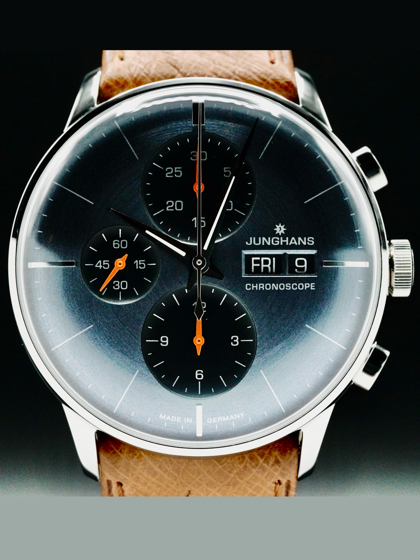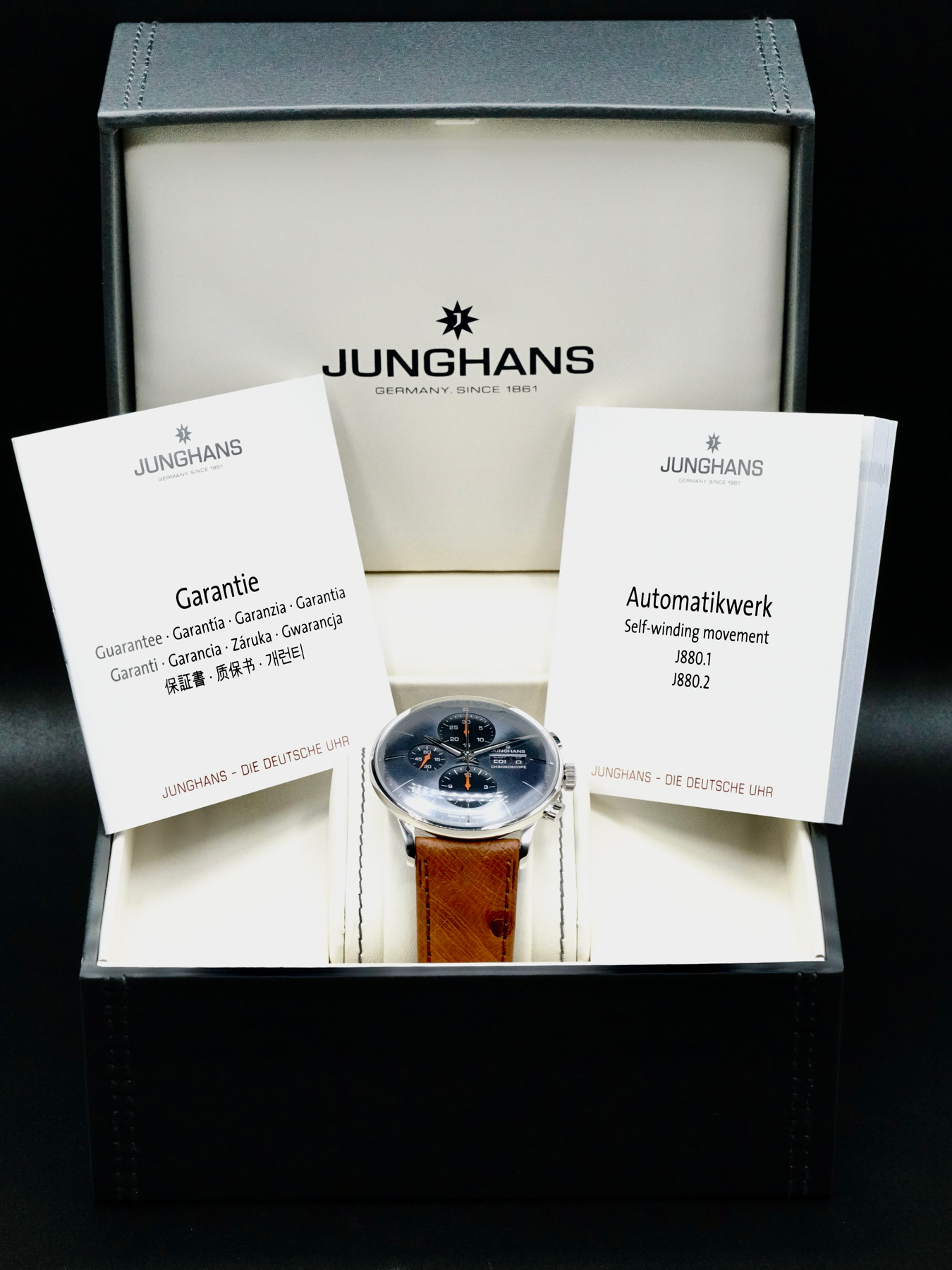 This Junghans 027/4224.03 Meister Chronoscope is in EXCELLENT condition. This watch includes original box, papers, warranty card dated 2024. This watch has been fully authenticated and certified by Exquisite Timepieces.