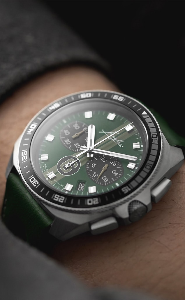 The love of sport in general and sports timekeeping in particular have a long tradition at Junghans. This began in the 1920s with the first hand stopwatches and continued with the timekeeping of numerous sports competitions culminating in Munich in 1972. The limited 1972 Chronoscope Sports Edition 2024 features a striking double stripe, the historical Junghans lettering and the number 6 in the form of a starting number. A touch of classic motor racing is evident here.