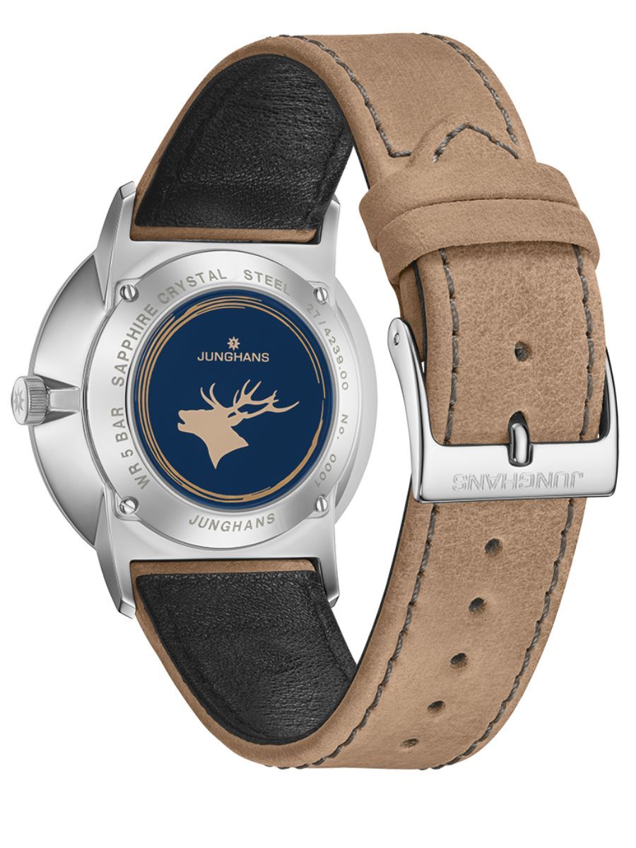 Origins can be understood geographically, but also philosophically. The new FORM models bear witness to the brand's love of both culture and the birthplace of German industrial design. Simplicity in design, harmonious touches of colour and the deer on the back of the case interpret the concept of home in modern life. This Form A is striking for its concave, domed, matt dark blue dial with beige markings between 12 o'clock and 6 o'clock.