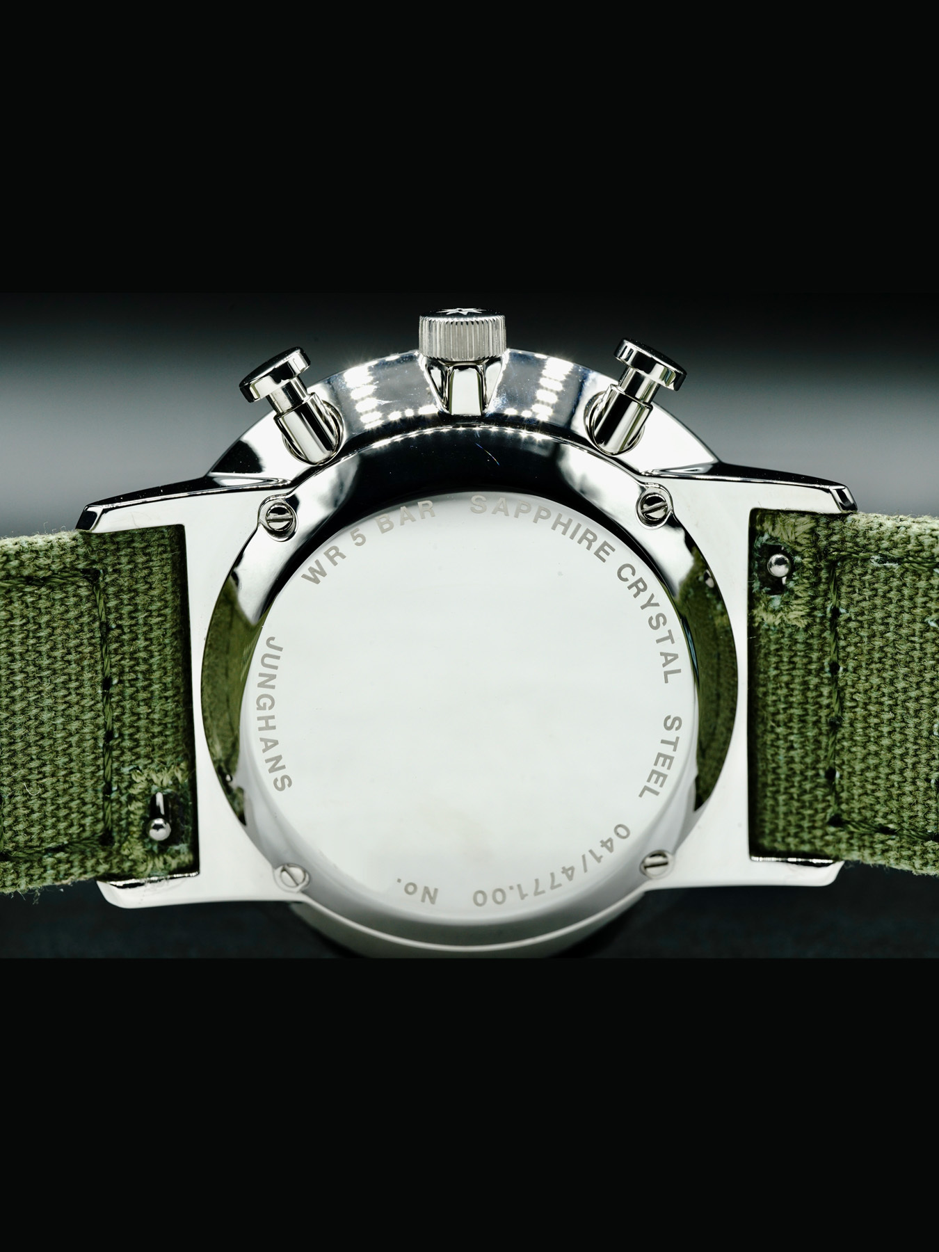 The FORM C is designed according to clear and simple principles – time is paramount. The modern, austere design of the timepiece offers scope for a remarkable three-dimensionality. This is established via a concave dial and rectangular minute markers. Similarly concave, recessed subdials extend the depth of gaze, whilst the stop minute and stop hour are united in the totaliser at 12 oclock. Water resistant to 5 bar and equipped with a robust sapphire crystal glass, the FORM C can withstand all demands of everyday life. A coloured design element is evident on closer observation of the two models. The finely-coordinated colouring of the minute markers is reflected in the contrasting seam of the underlayer – small, surprising details that illustrate the fascination of the Form Chronoscope. The FORM C from Junghans – for people who value time.