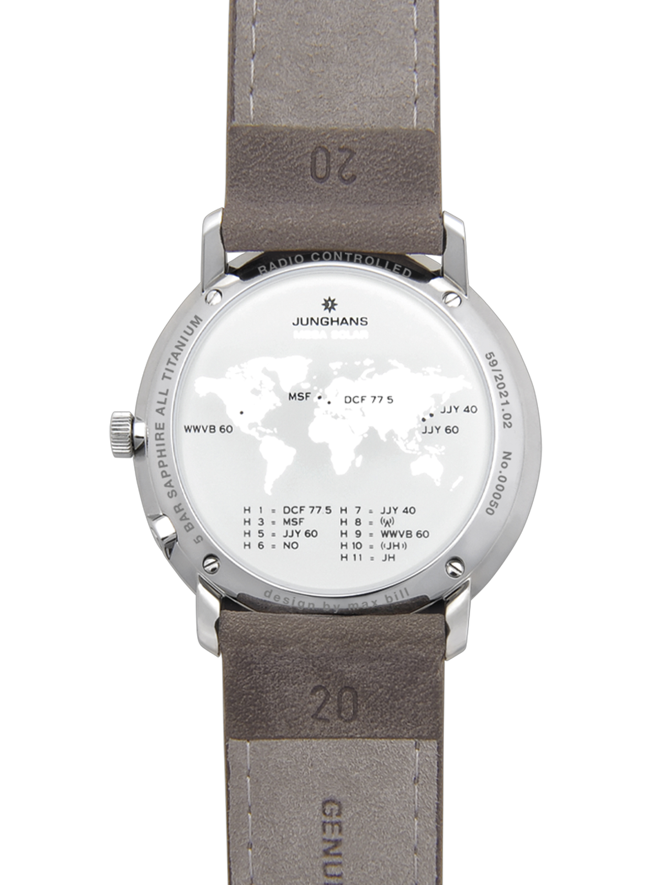 max bill MEGA Solar - Its minimalist design is timeless, and all of the power it requires is provided naturally from the sun. Due to its titanium composition, the watch is surprisingly light and has an extremely pleasant feel on the skin. A state-of-the-art radio-controlled movement, perpetual calendar and effortless adjustment of the time zones are included for added comfort. Time zones can be set either using the crown or in a matter of seconds via Junghans’ own time signal from the Junghans MEGA App.