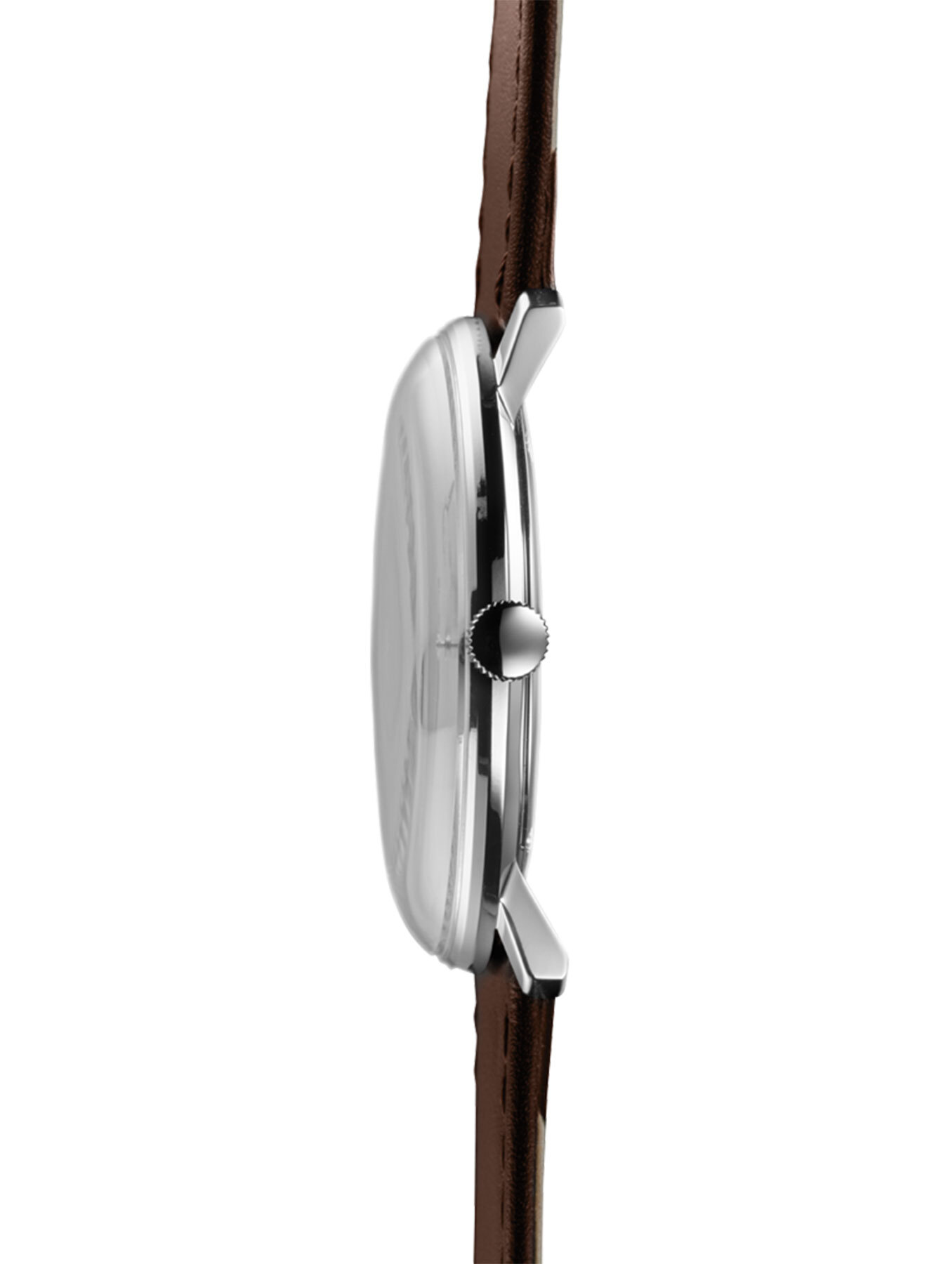 In addition to the classic mechanical drives, this design classic is also available with a high-quality quartz movement. Ready for use at all times, this puristic timekeeper is a reliable companion.