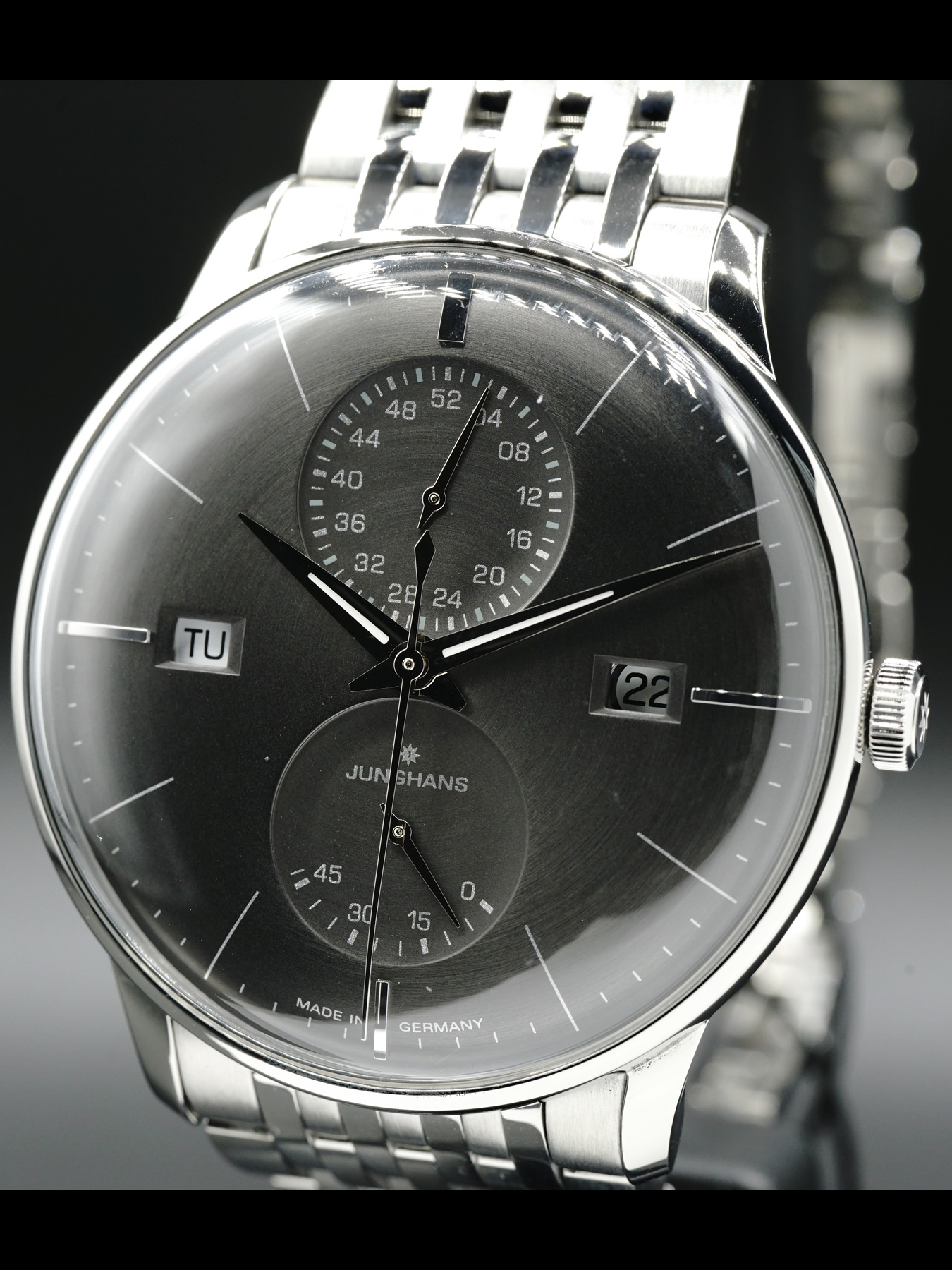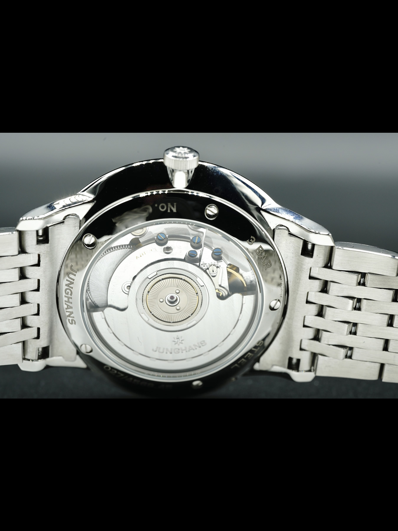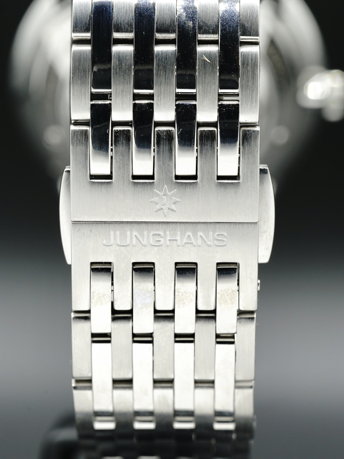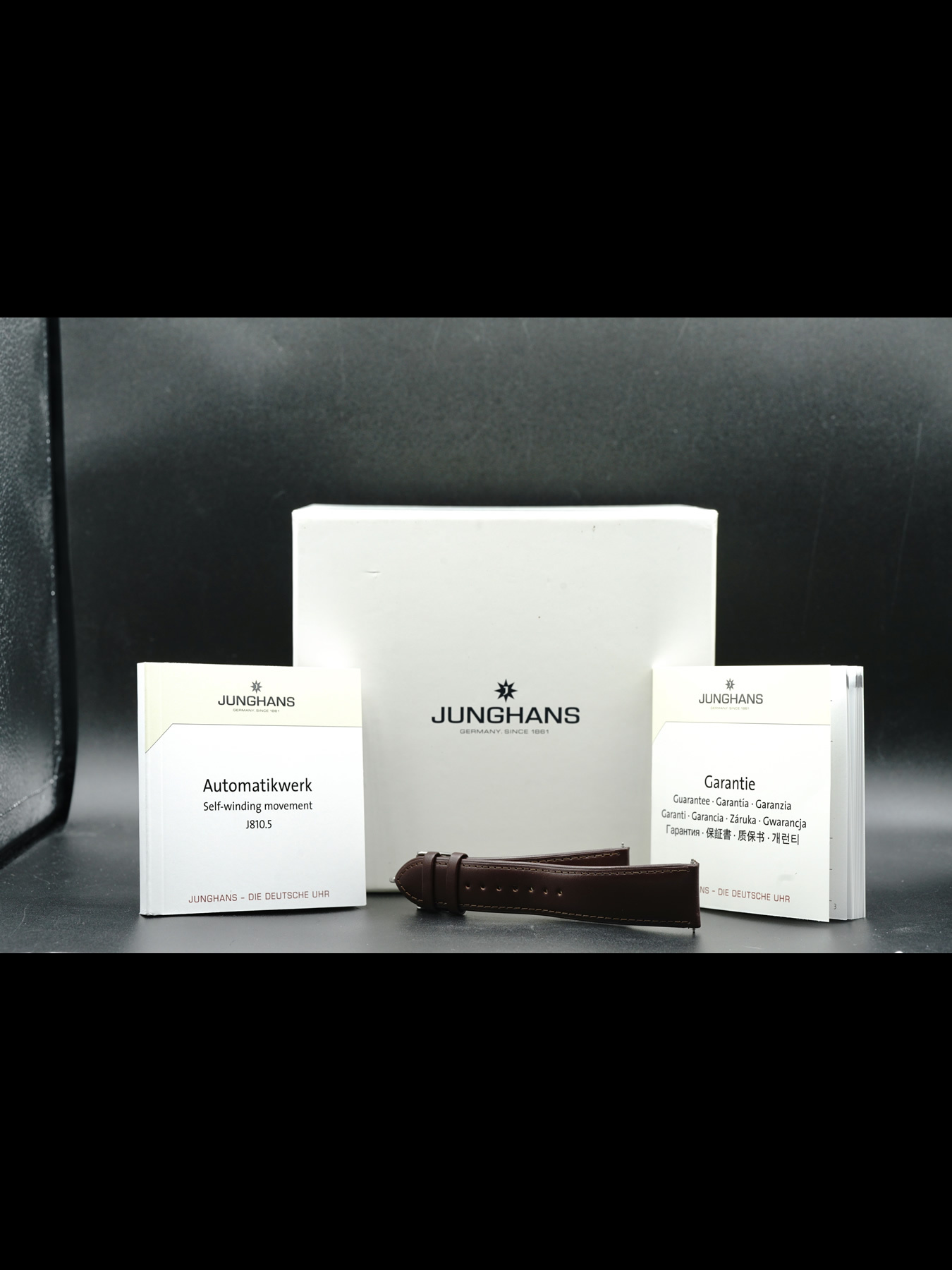 Powered by Junghans Calibre J810.5 for a power reserve of approximately 40 hours. Water resistance up to 30 meters.