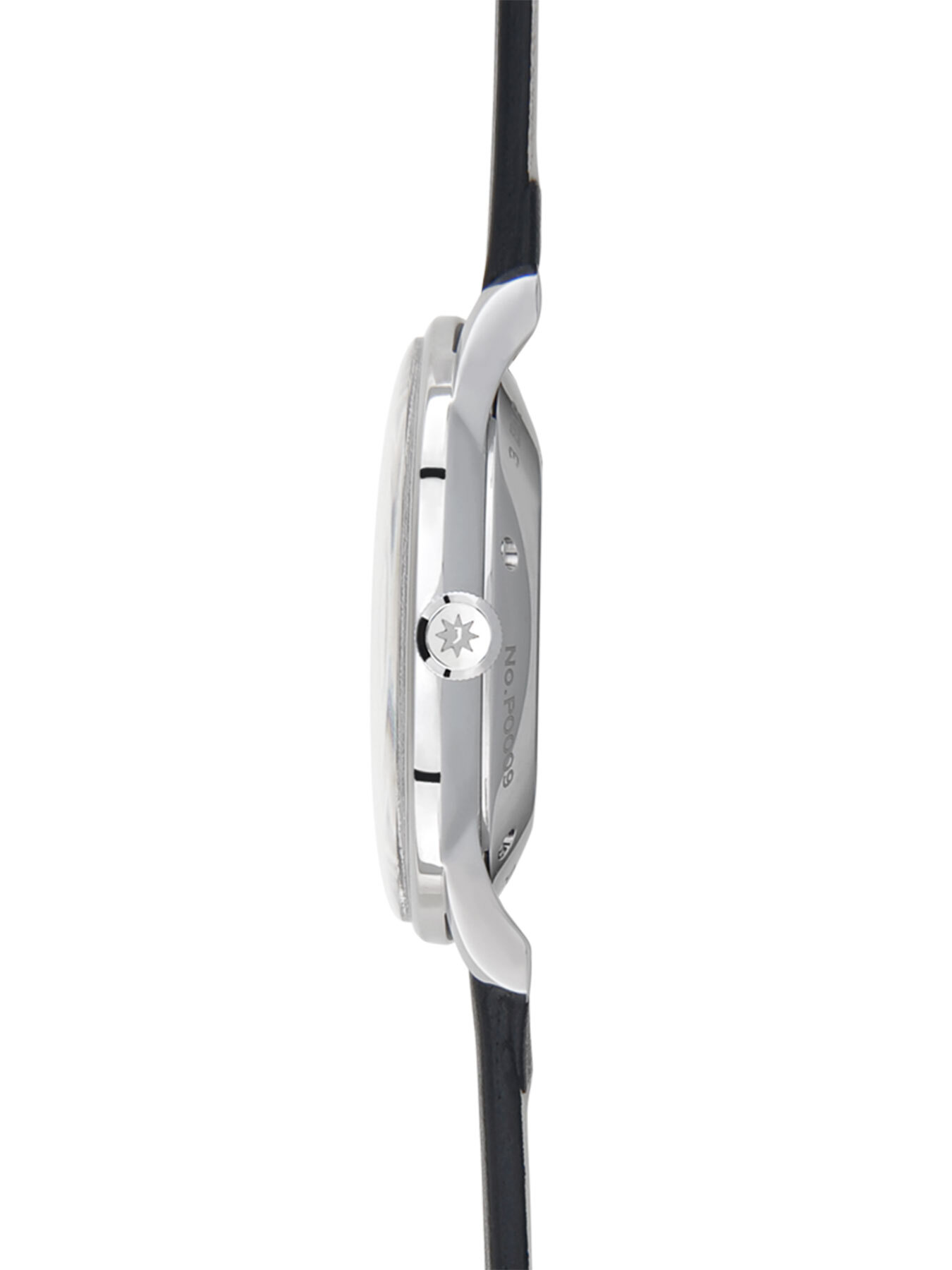 • This timepiece features a 38mm steel case paired with a high quality leather strap. It showcases a distinctive black dial and is powered by a precise automatic winding movement. The watch is designed with a water resistance of up to 30m.