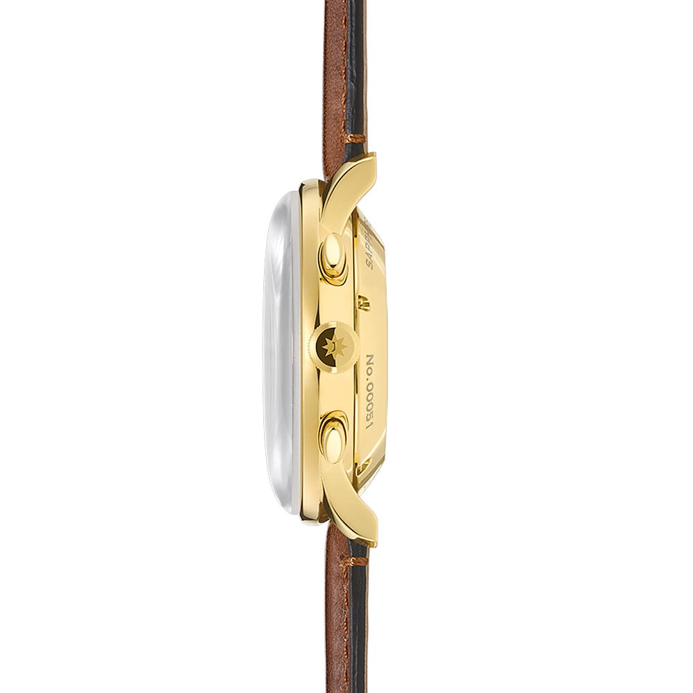 Elegant or dynamic? A moot consideration for the Meister Chronoscope. After all, this watch effortlessly combines classic charm with sporty functions. The characteristic, bowl-like dimples for the auxiliary dial are a typical feature for the Meister range.