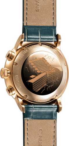 5-times screwed case back 18-kt rose gold with terrace building angraving