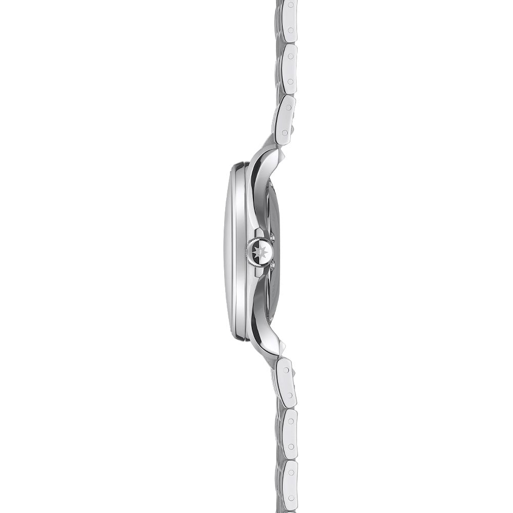 - This timepiece features a 36mm steel case paired with a high quality steel bracelet. It showcases a distinctive blue dial and is powered by a precise automatic winding movement. The watch is designed with a water resistance of up to 100m.