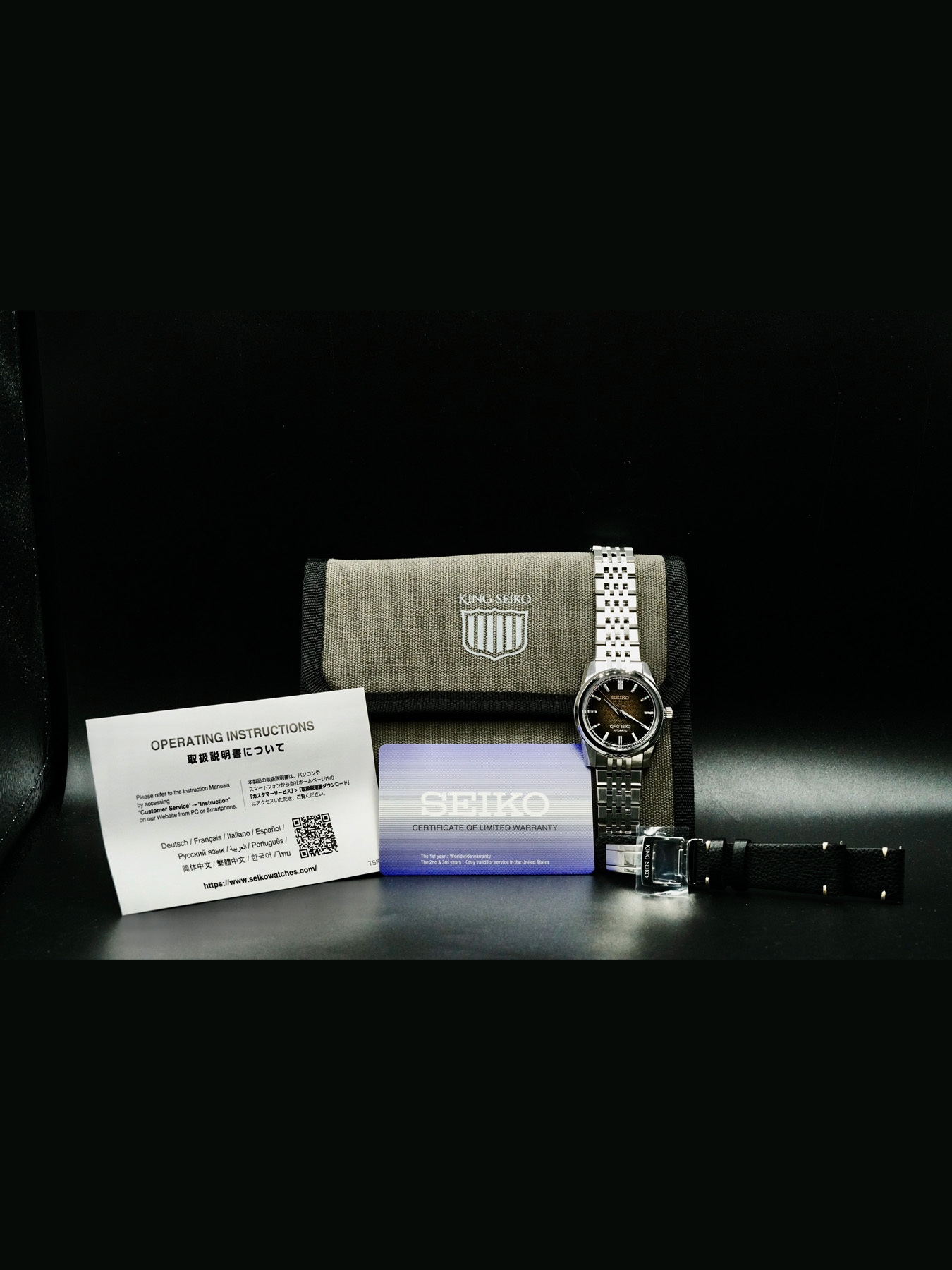 This King Seiko SPB365 Seiko Watchmaking 110th Anniversary Limited Edition is in EXCELLENT condition. This watch includes original box, instruction booklet and warranty card dated 2023. Extra black leather strap with stainless steel buckle.