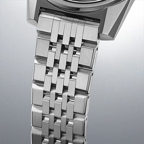 The bracelet, combines a sense of luxury, ease of use, and a good fit on the wrist. Thanks to a newly developed double lever system for easily changing the metal bracelet, the watch can be worn in a variety of situations by combining it with a wide range of 10 exclusive leather straps (sold separately).
