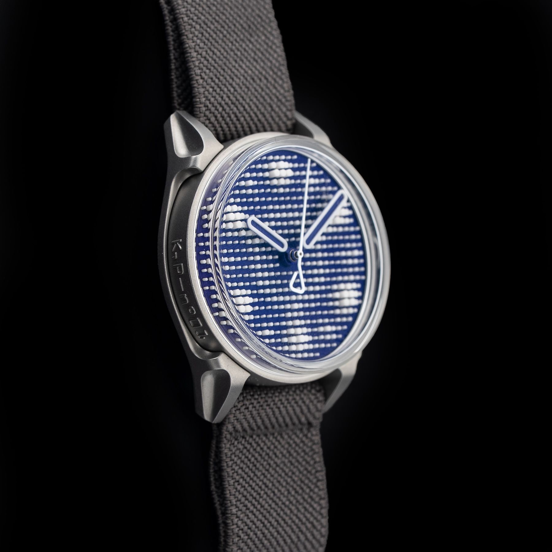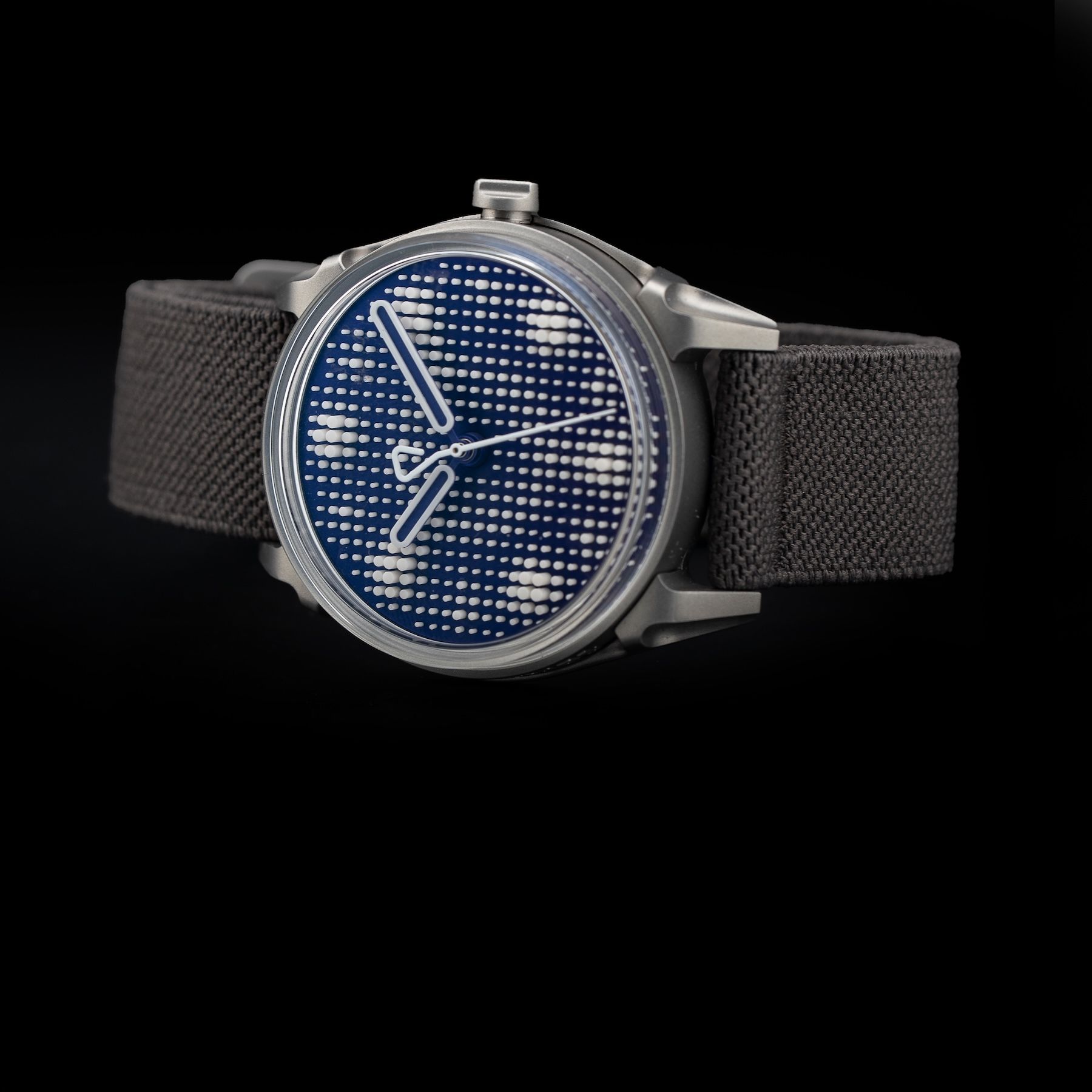 This watch features a 40mm steel case on textil strap. This watch also sports a violet dial. Powered by a La Joux-Perret G101 automatic movement. Water resistance up to 50 meters.