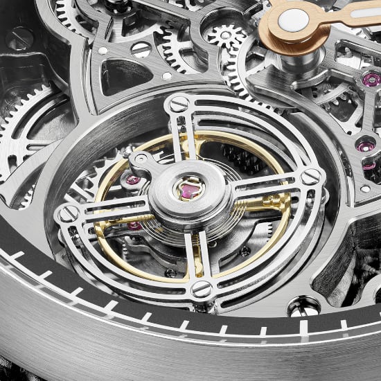 This movement features a flying tourbillon positioned at 6 o’clock, oscillating at a frequency of 3 Hz. It is the frequency that guarantees stability, precision and long-term chronometry without over-stressing the system. Controlled energy. Controlled amplitude.