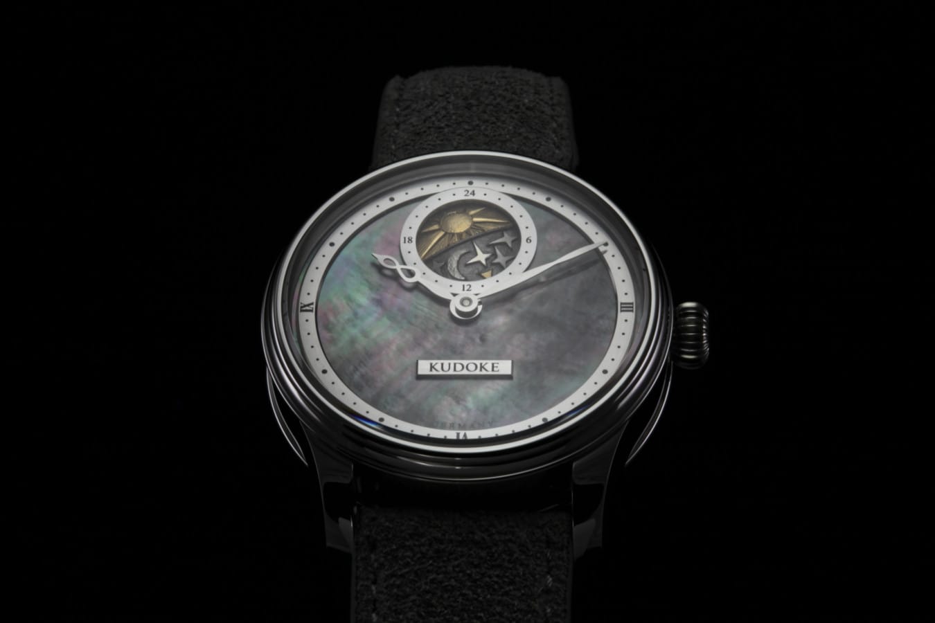 The dial continues the artistic line of the first model, juxtaposing Roman and Arabic numerals on the rhodium-plated chapter rings. Another eye-catcher is Stefan’s hallmark infinity hour hand – the symbol of time itself. Here the KUDOKE 2 expressly decelerates and relaxes the experience of time here with the omission of a seconds hand.