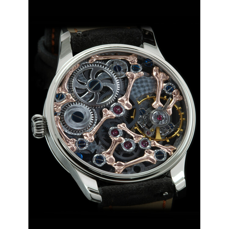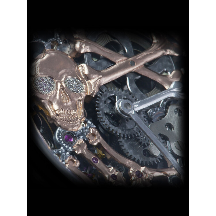 The one and only skeleton watch: with hand-skeletonized bones and a diamond-eyed skull this model takes the term “skeleton” literally. Inspired by historical Memento-Mori clocks, Real Skeleton stands for the transience of time. Handcrafted hands in the shape of bones round off the concept of the art watch.