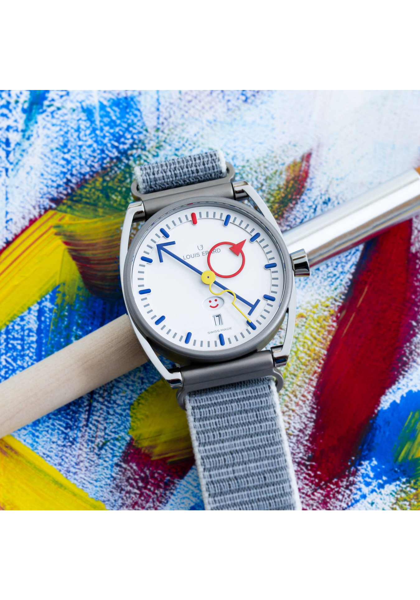 With its three hands, date and day, La Semaine Blanche Louis Erard x Alain Silberstein features the exquisite weekly planner developed by Mr Silberstein, easily recognisable as his work: the days do not have names, but rather playful smileys – small, stylised faces symbolising different moods and reminding us that time is a flow, an experience, an emotion evolving through the days.