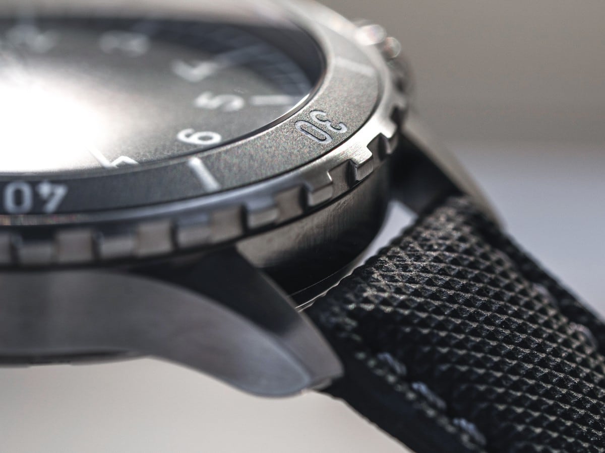 Another striking feature is the ceramic bezel, which subtly opens the design toward the world of sporty diver watches. Diver models have always been recognized by their rotating bezel – a distinctive tool for measuring time. The Köln adopts this design element without denying its origins as a pilot’s watch. The result is a captivating blend of classic cockpit aesthetics and modern sportiness.