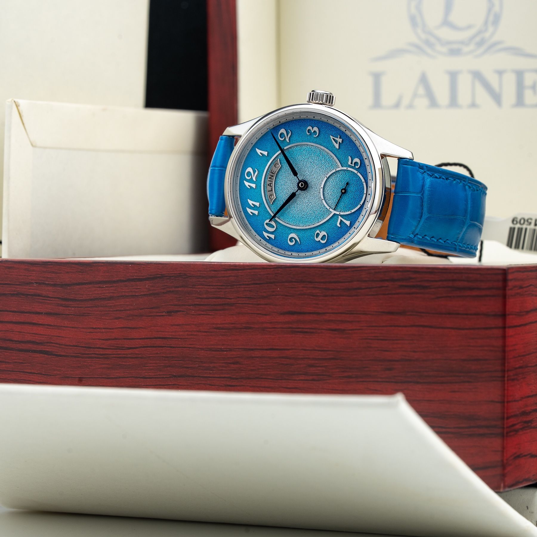 This Laine Gelidus 2 Blue Dial is in GREAT condition. This watch includes its Original Box Only. This watch has been fully authenticated and certified by Exquisite Timepieces. Please note, the photos shown are of the actual watch you will receive.