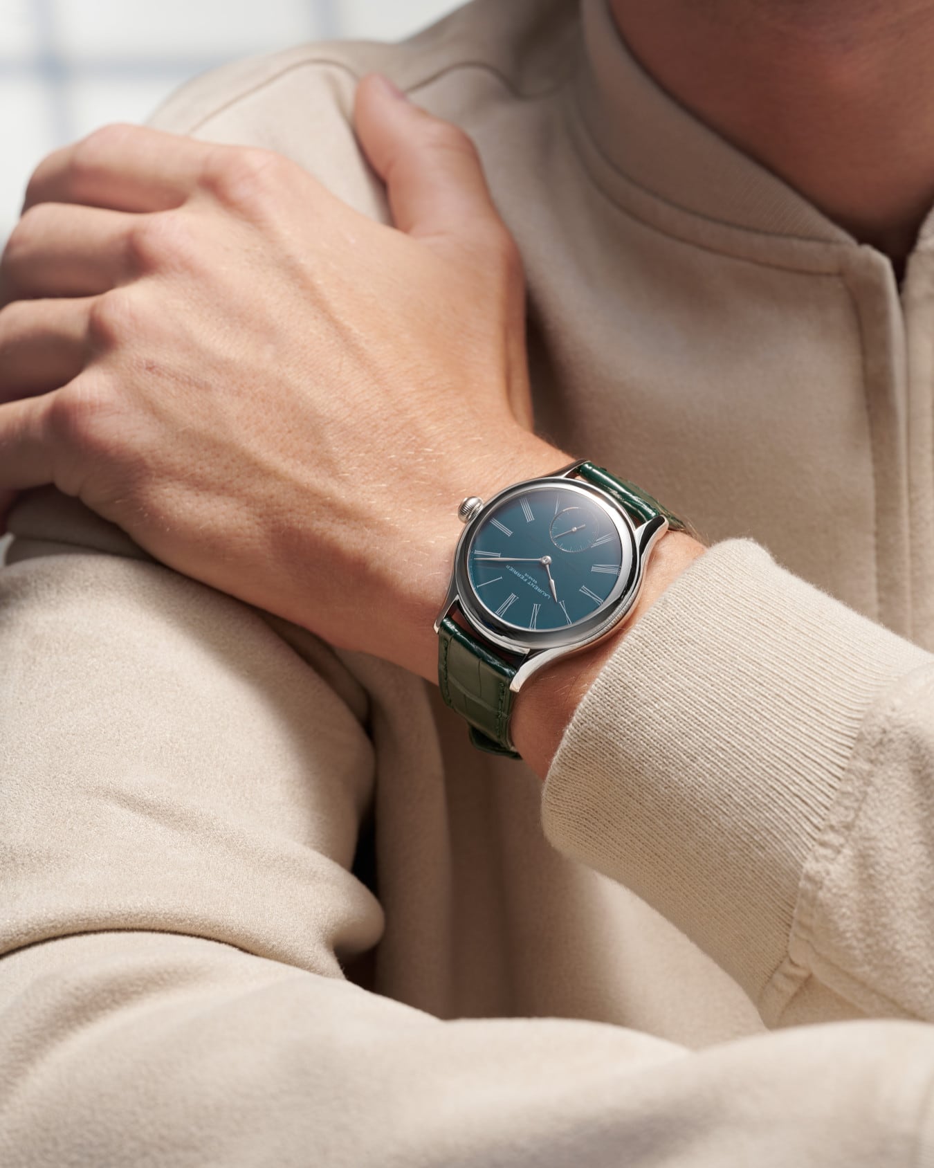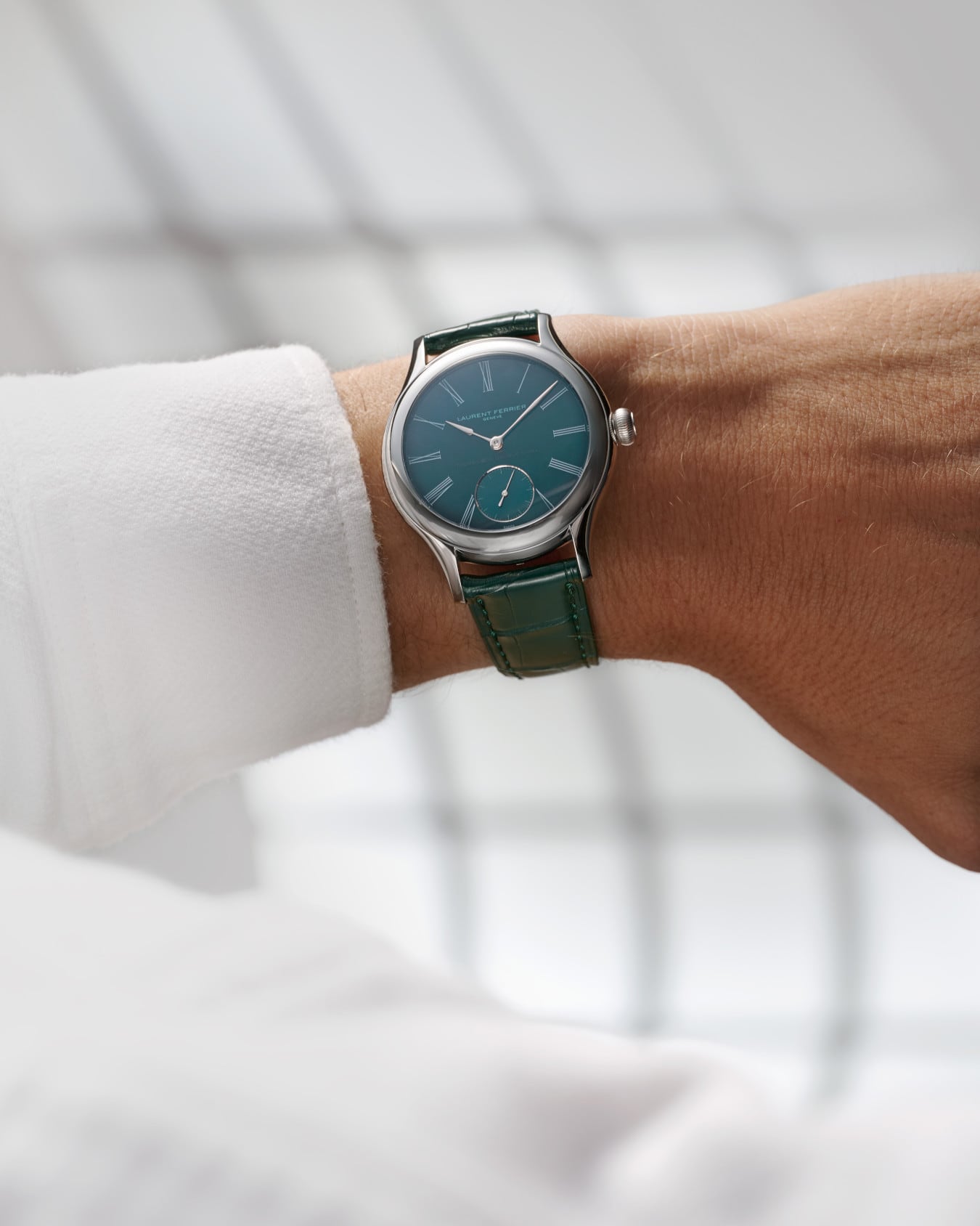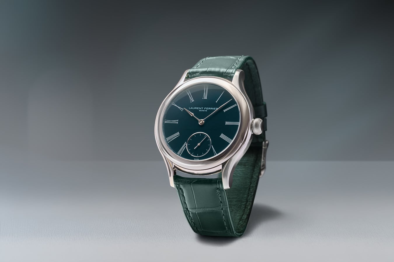In 2010, Laurent Ferrier marked the beginning of his independent career by winning the Men's Watch Prize at the Grand Prix d’Horlogerie de Genève with his very first model, the Classic Tourbillon. That watch was equipped with an ingenious hand-wound movement fitted with a double balance spring tourbillon. In this case, the tourbillon is not a visual showcase but rather serves its original purpose discreetly: to ensure precision in timekeeping. The new Classic Tourbillon Teal – Atelier Series VII features the same LF619.01 calibre, albeit presented with a more contemporary finish.