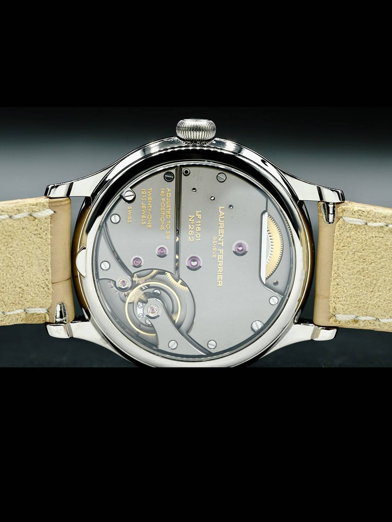 Manual winding movement powered by Laurent Ferrier Calibre LF116.01 with a power reserve of approximately 80 hours. Water resistance up to 30 meters.