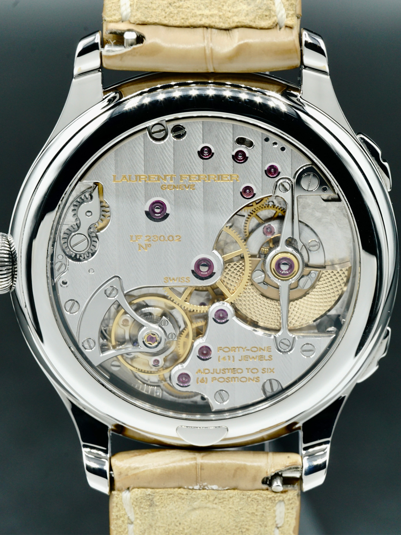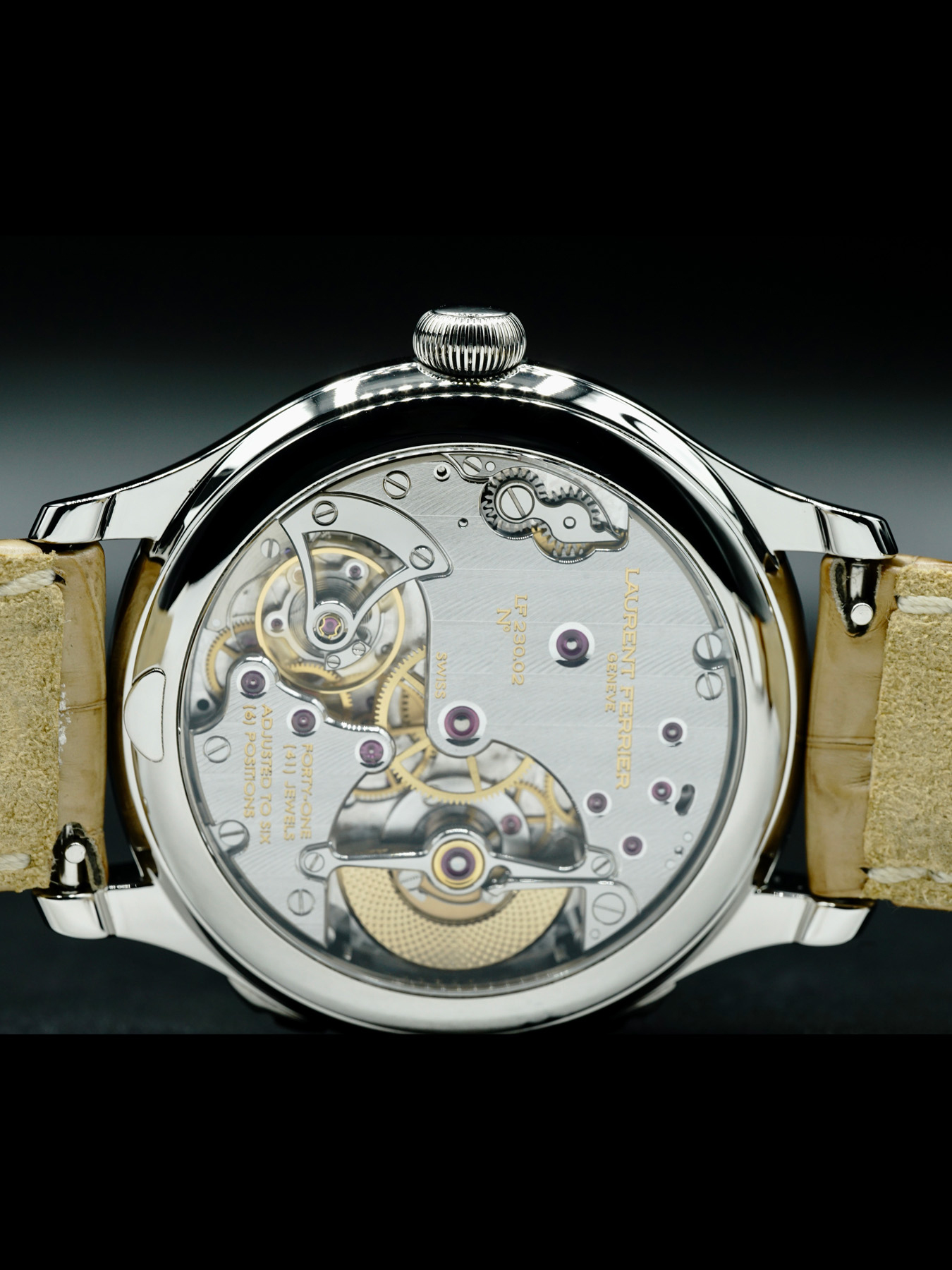 Automatic movement powered by Laurent Ferrier Caliber LF230.02 for a power reserve of approximately 80 hours. Water resistance up to 30 meters.