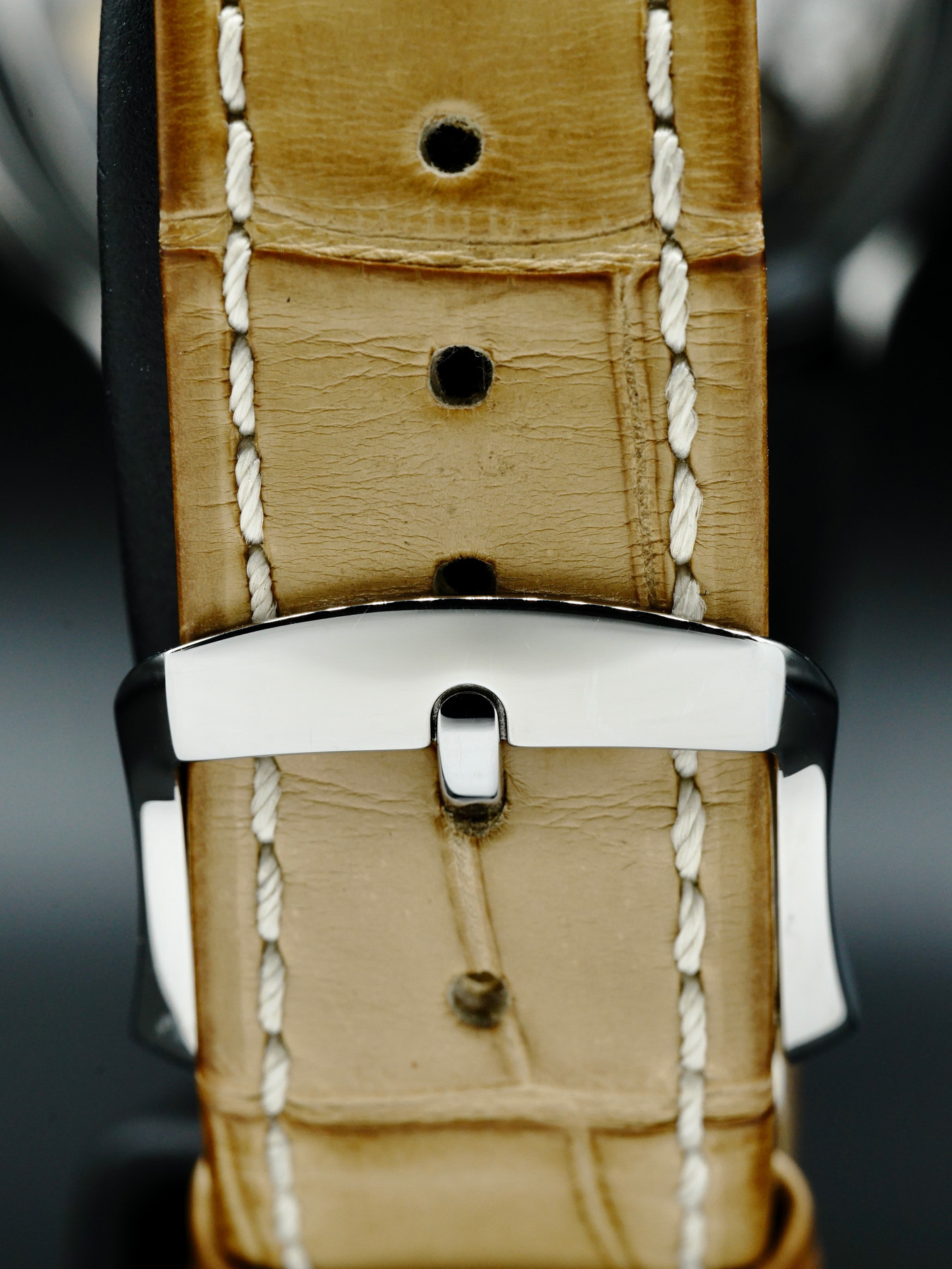 This Laurent Ferrier Galet Traveller features a 41mm stainless steel case & bezel with a transparent sapphire crystal case back on a brown leather strap. This watch also sports an opaline black dial with 18k white gold hands and dial markers covered by scratch resistant sapphire crystal.