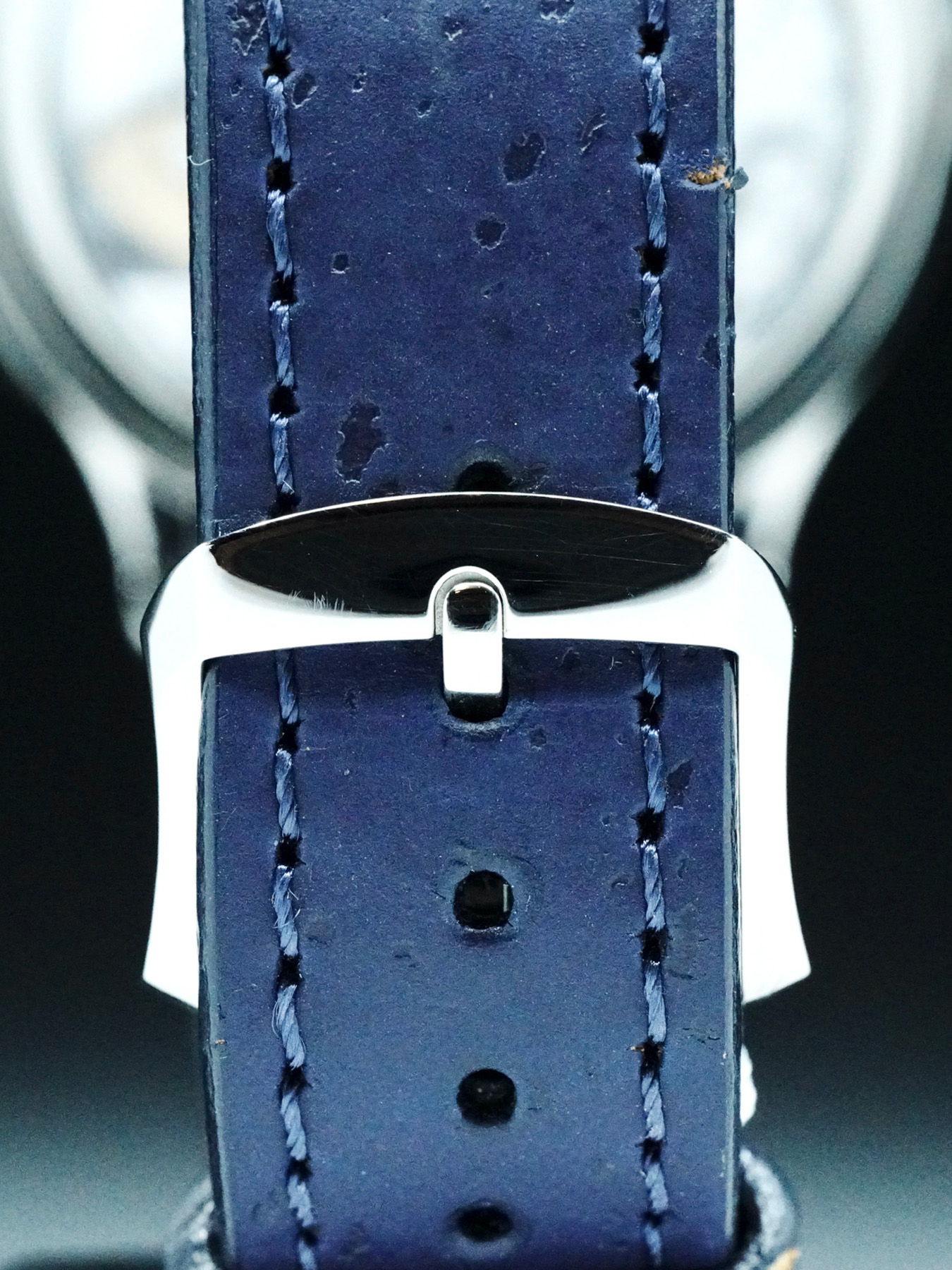 This watch features a 41mm titanium case on midnight-blue cork strap. This watch also sports a blue dial. Powered by a self-winding movement. Water resistance up to 30 meters.