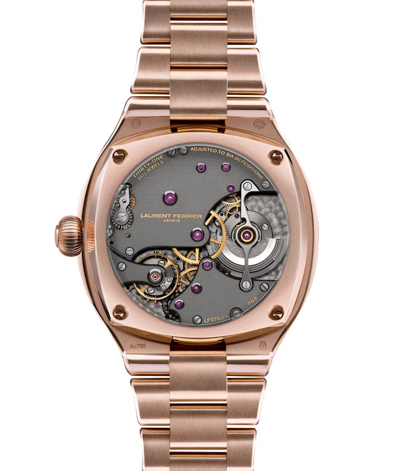 The opaline cream dial, achieved through a galvanic treatment, exudes a subtle rose-silver hue, reflecting the understated elegance synonymous with Laurent Ferrier. Accentuated by 5N red gold indexes and Assegai-shaped hands filled with white Super-LumiNova®, the dial ensures optimal legibility. A snailed small seconds subdial at 6 o'clock and a beveled date aperture at 3 o'clock add functional sophistication.