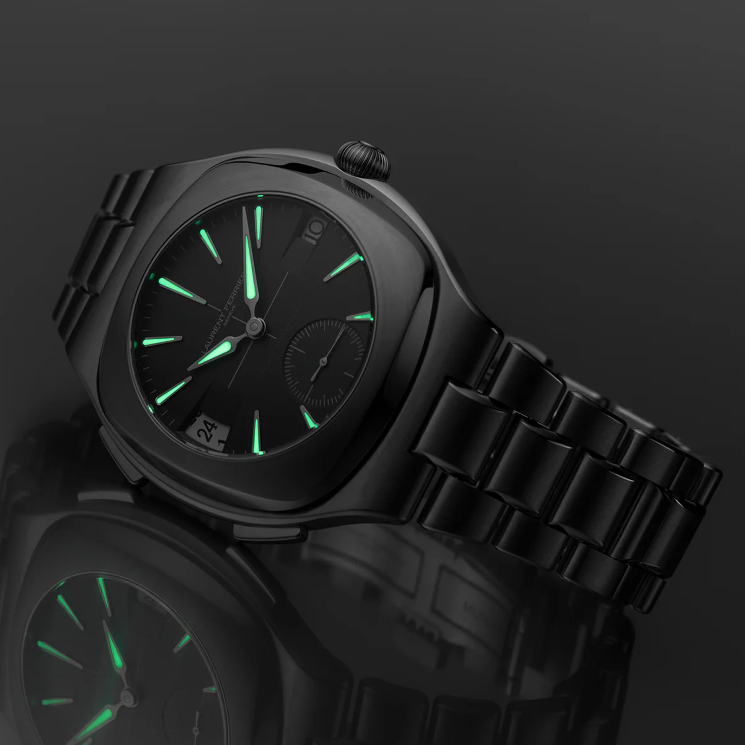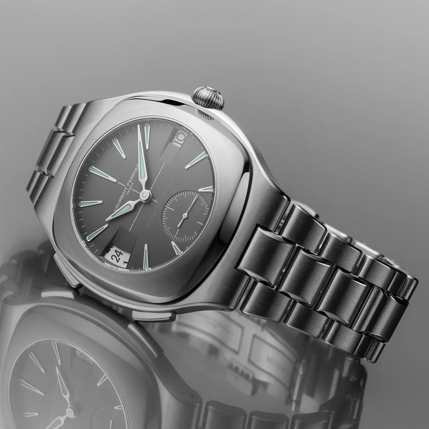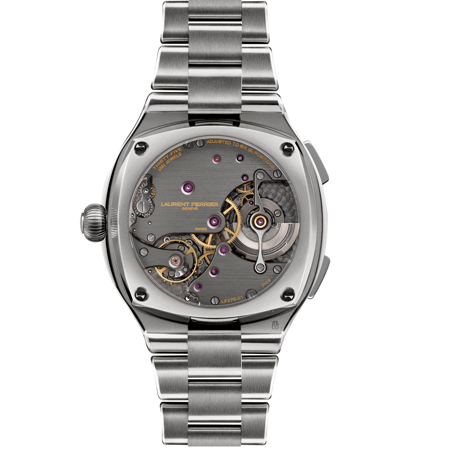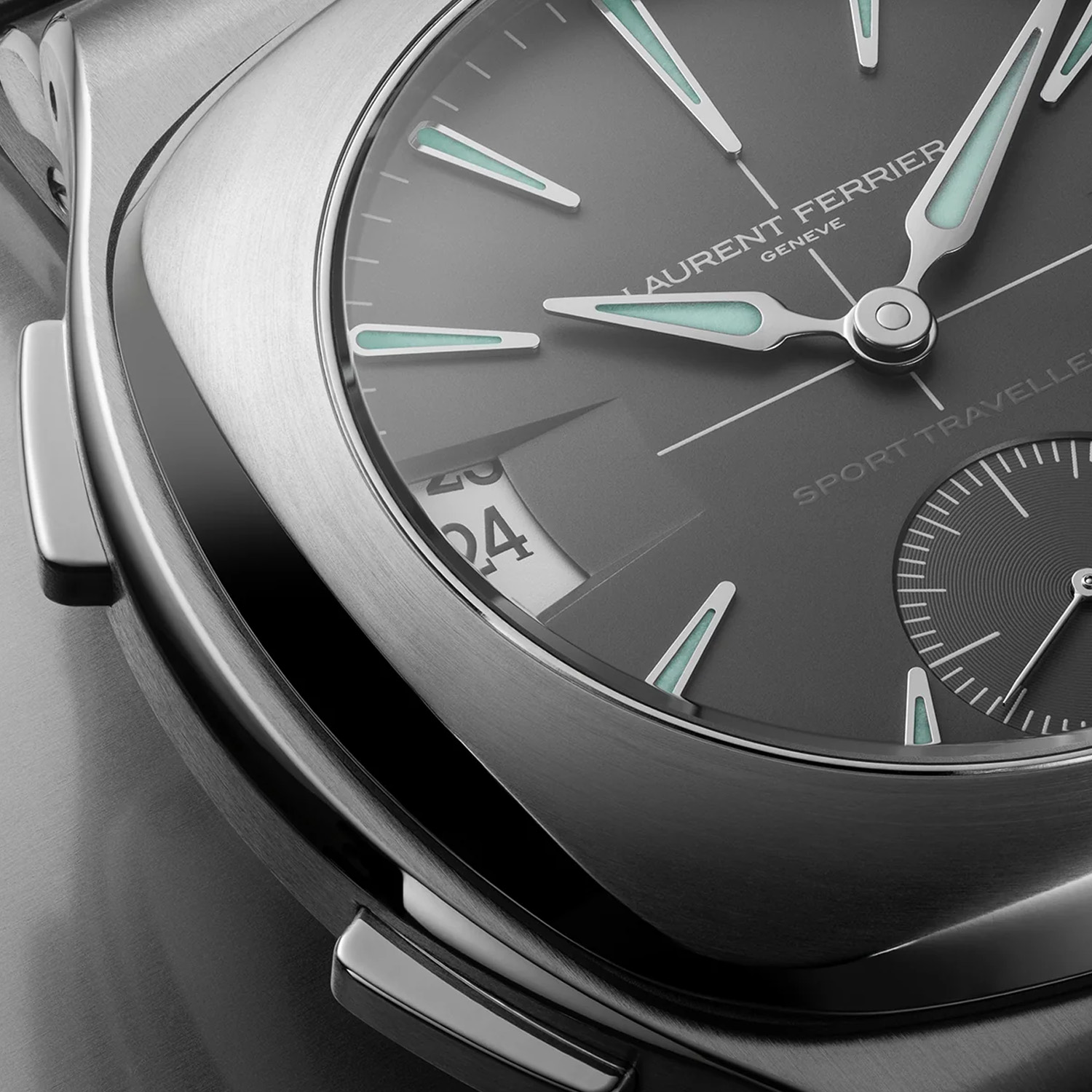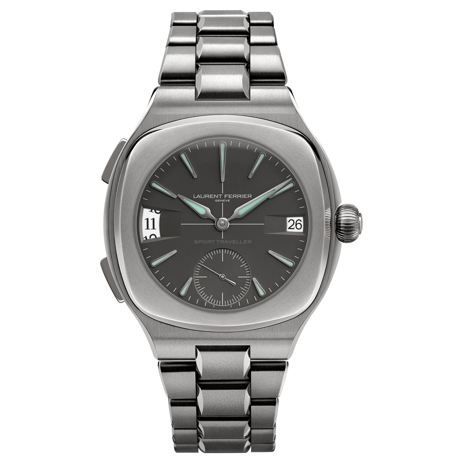 Two time zones. One gesture. The Sport Traveller wraps the new LF275.01 manufacture calibre: automatic, 72-hour power reserve, off-centred platinum micro-rotor; in a 42 mm grade 5 titanium case with integrated bracelet.