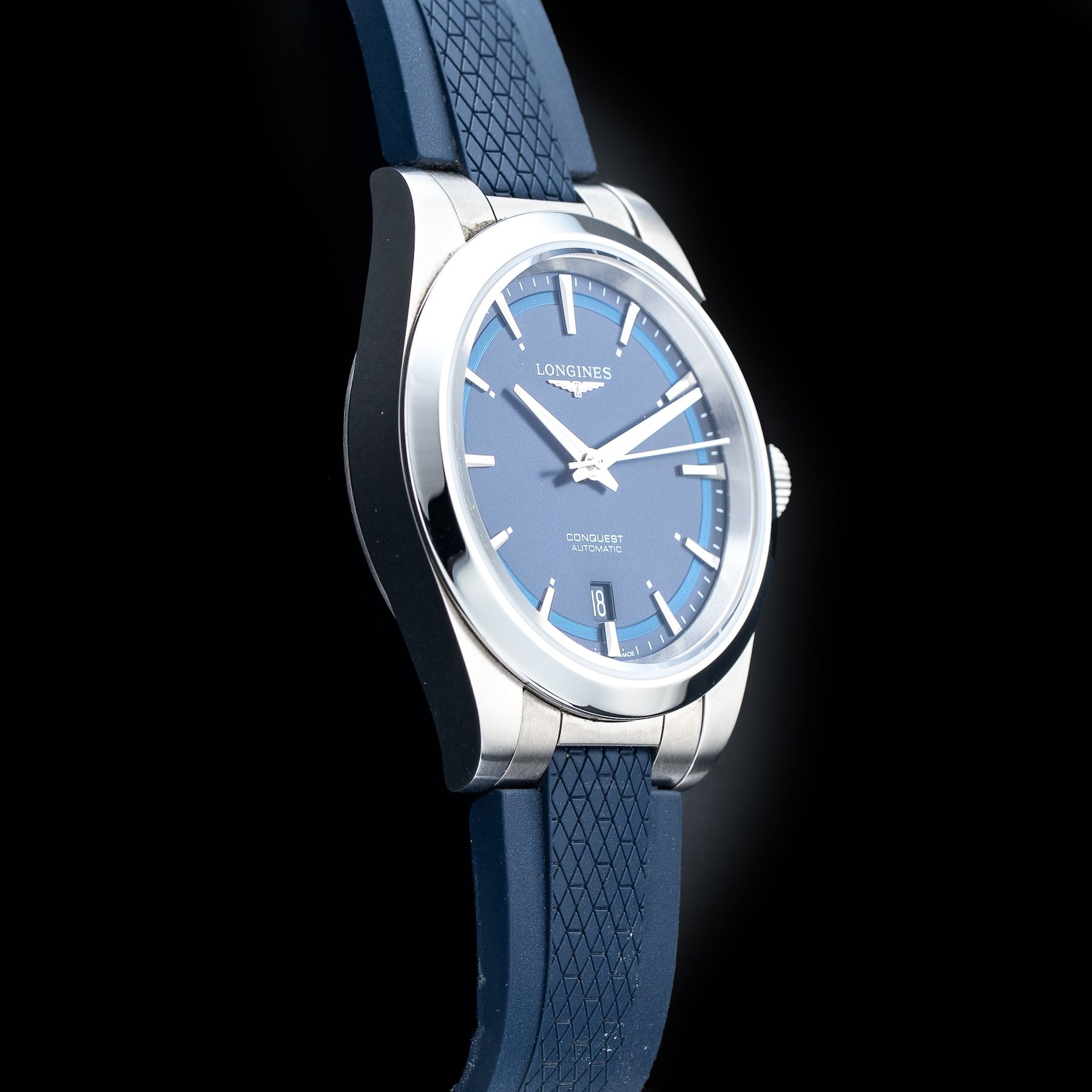 This Longines L3.720.4.92.9 Conquest is in GREAT condition. This watch includes its Original Box, Original Papers, warranty card dated 08/08/2025. This watch has been fully authenticated and certified by Exquisite Timepieces. Please note, the photos shown are of the actual watch you will receive.