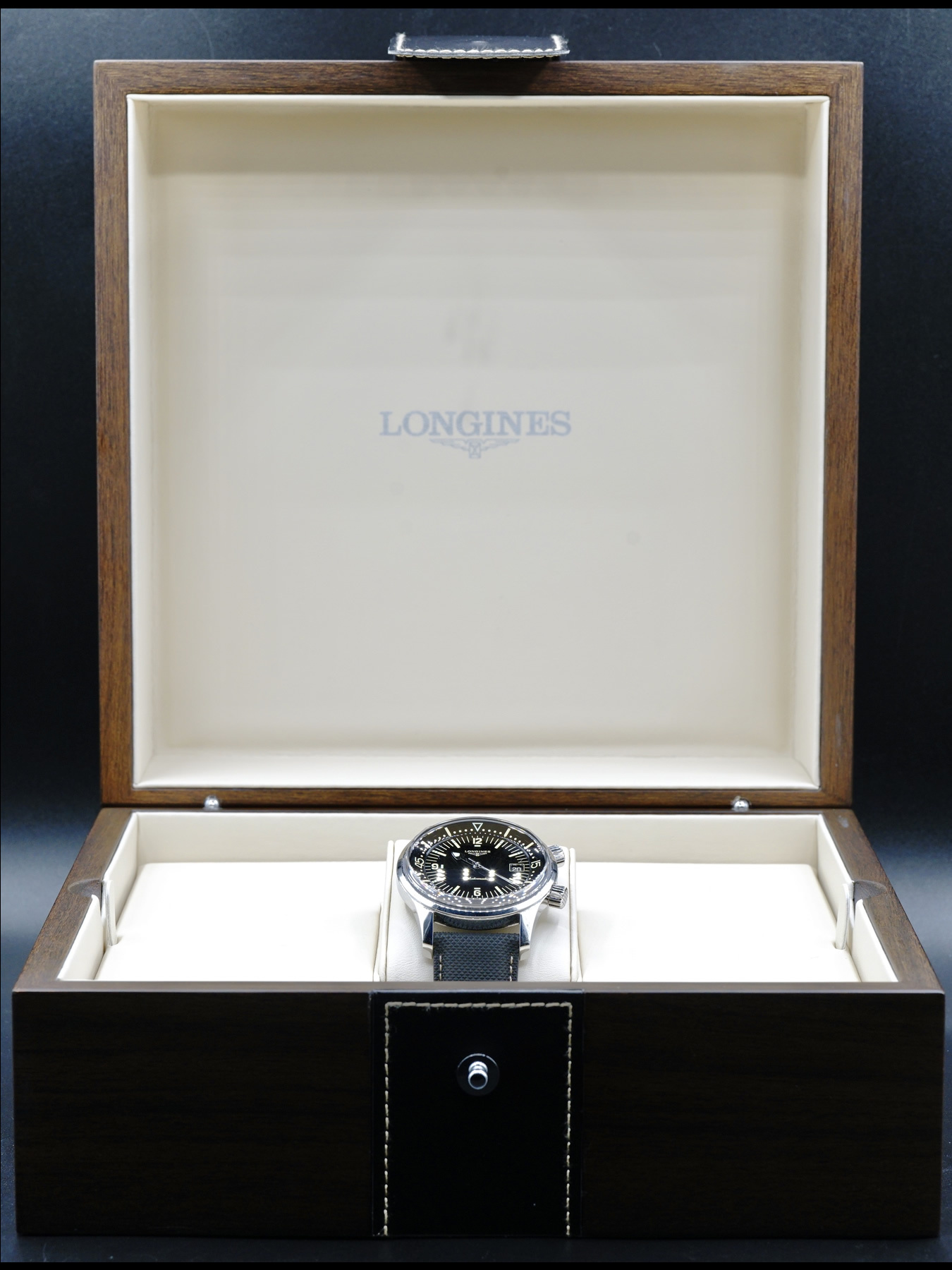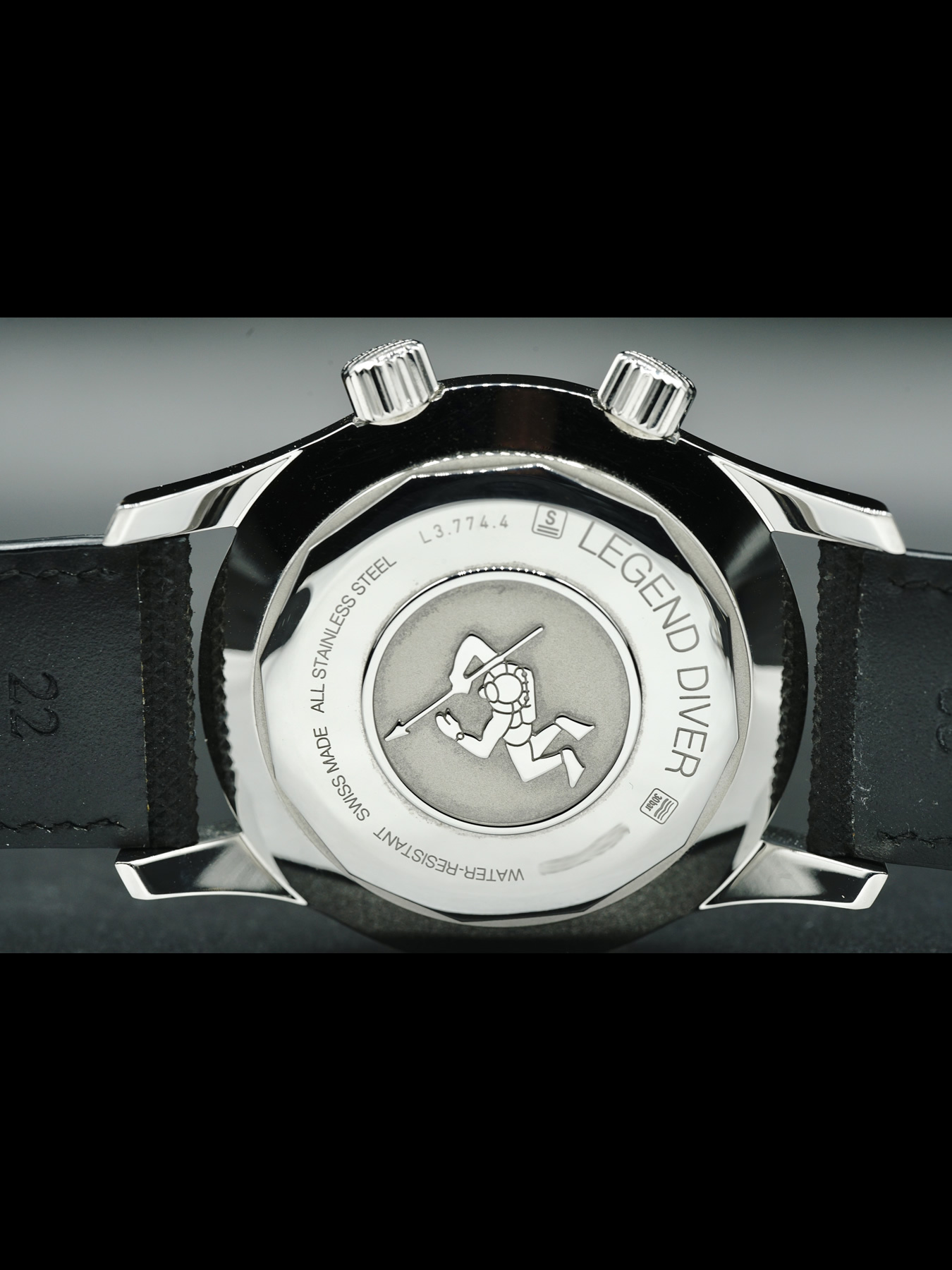 This Longines Legend Diver L3.774.4.50.0 is in EXCELLENT condition. This watch includes its original box, instruction manual, and customer service booklet.