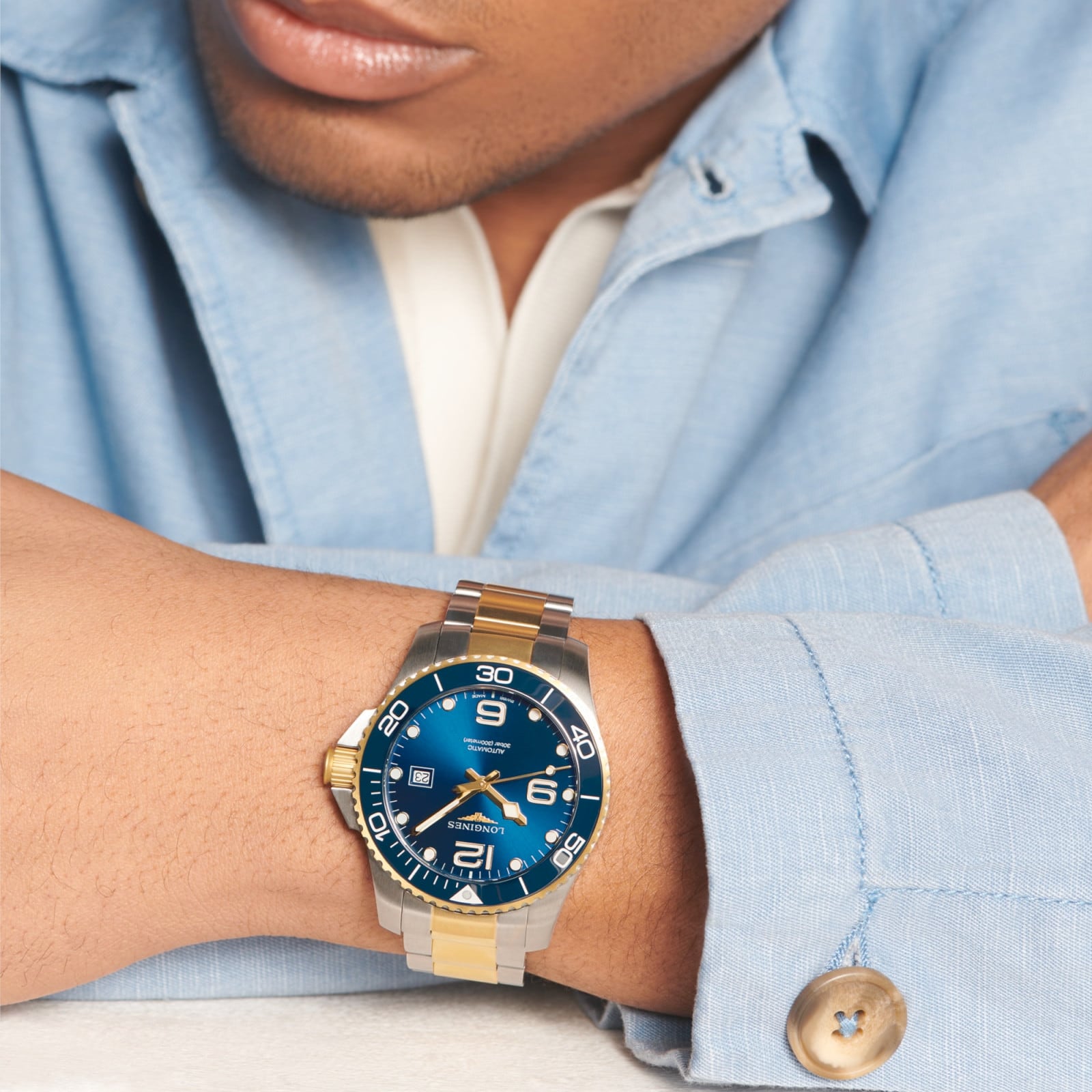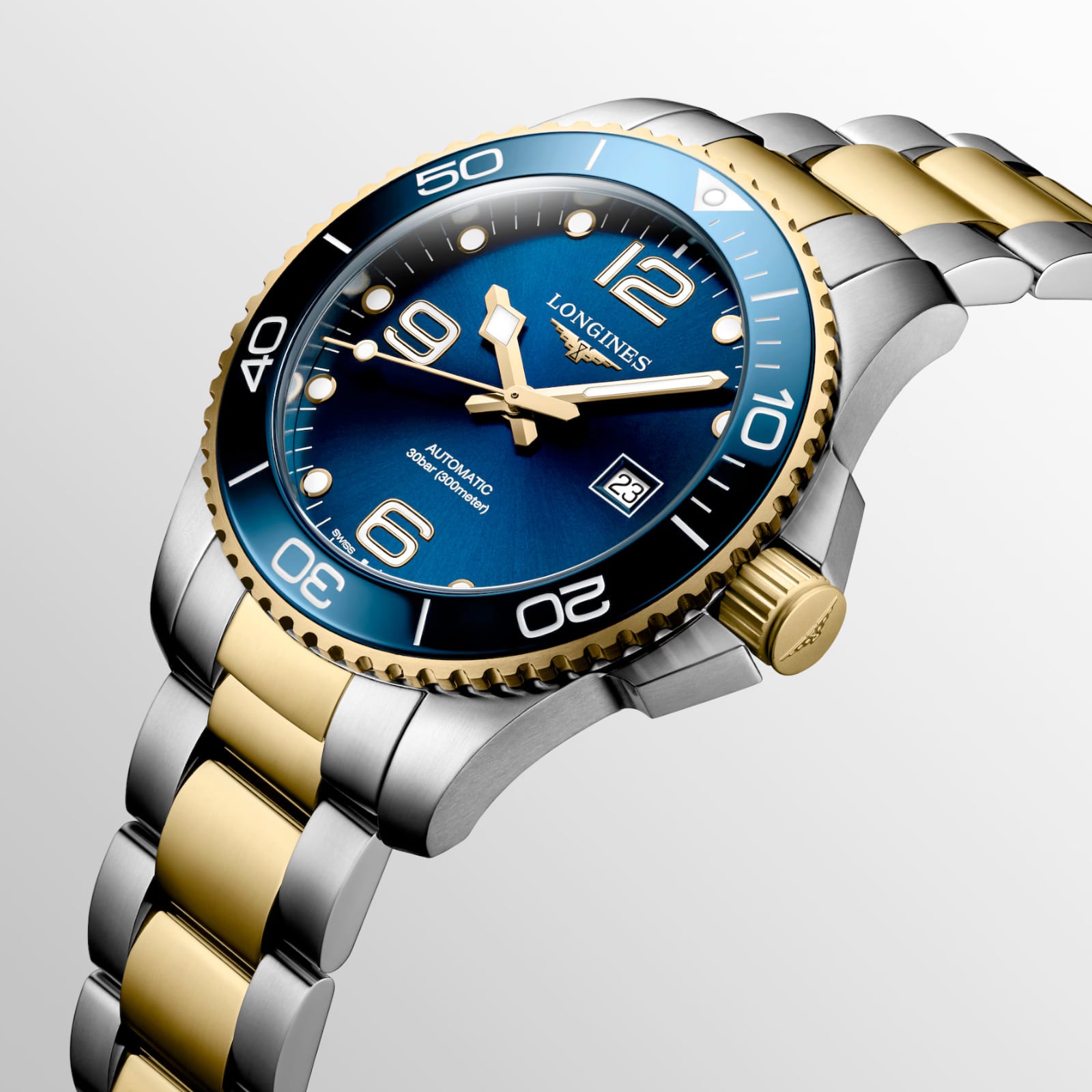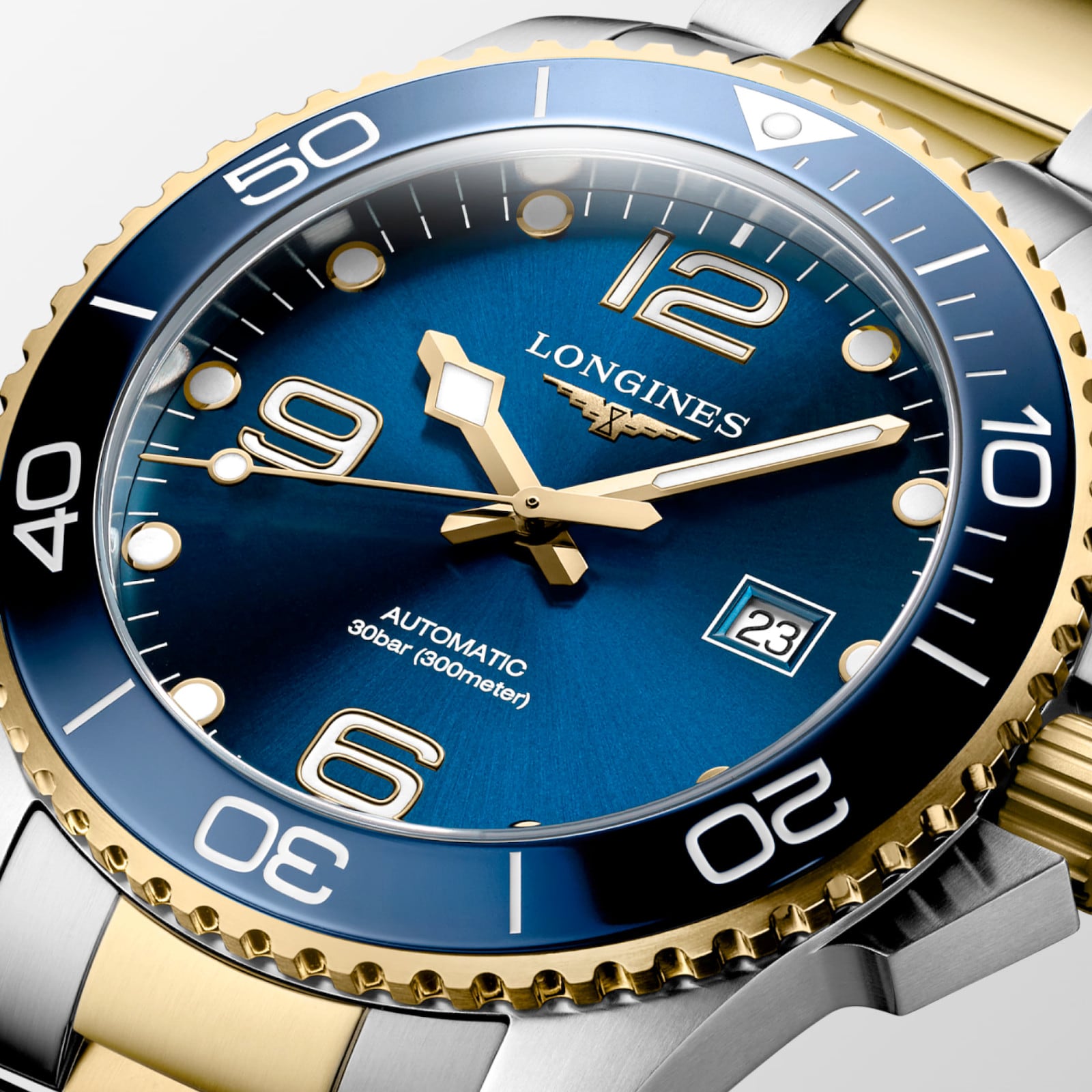 Inspired by the world of water sports, the HydroConquest collection stands out with its daring design. Water-resistant up to 30 bar (300 m) with a unidirectional rotating bezel and screw-down crown and case back, it guarantees exceptional reliability at all times.