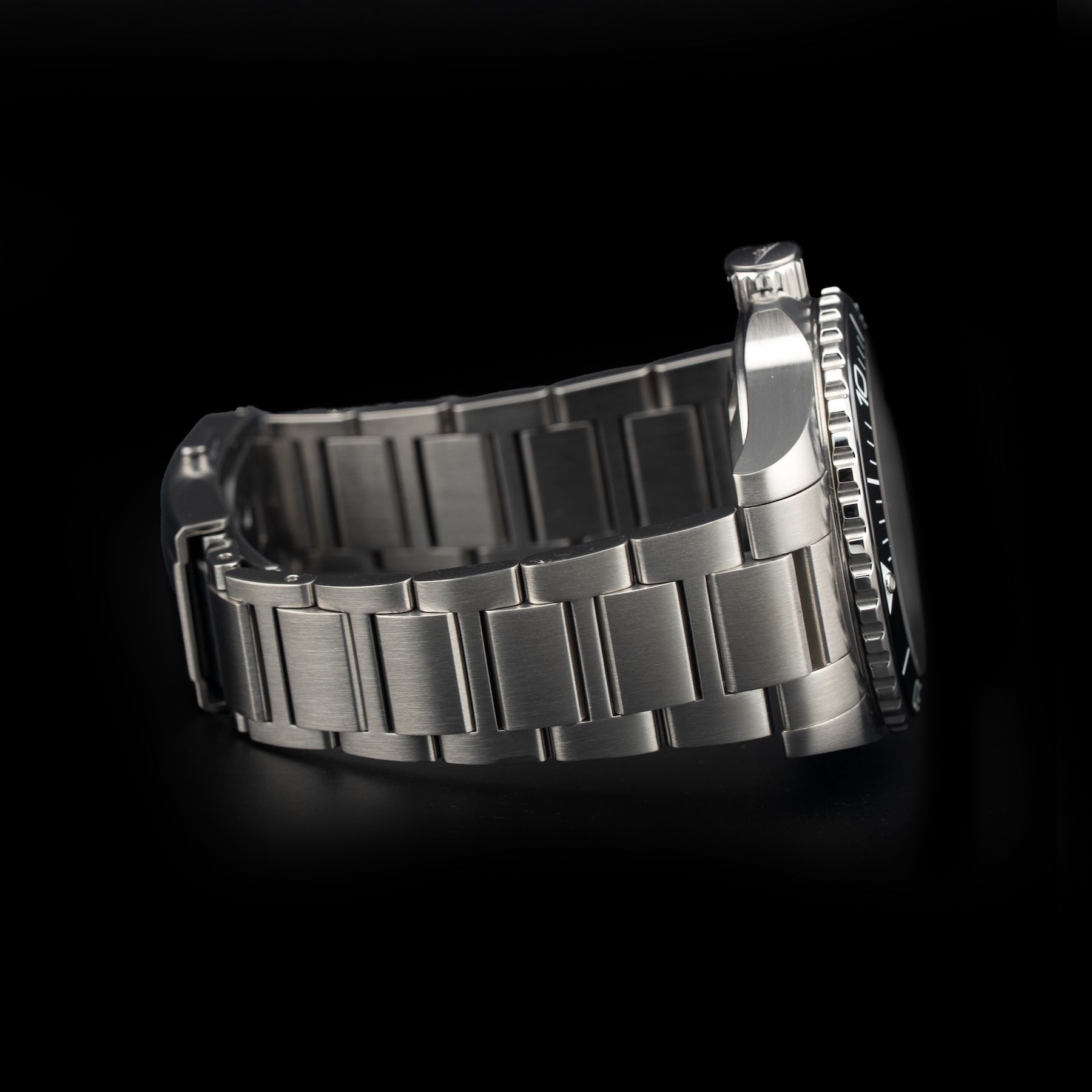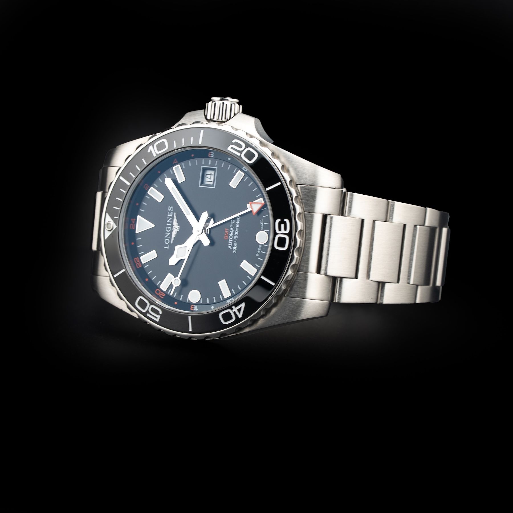 This watch features a 41 steel case on steel strap. This watch also sports a black dial. Powered by an automatic movement. Water resistance up to 300 meters.