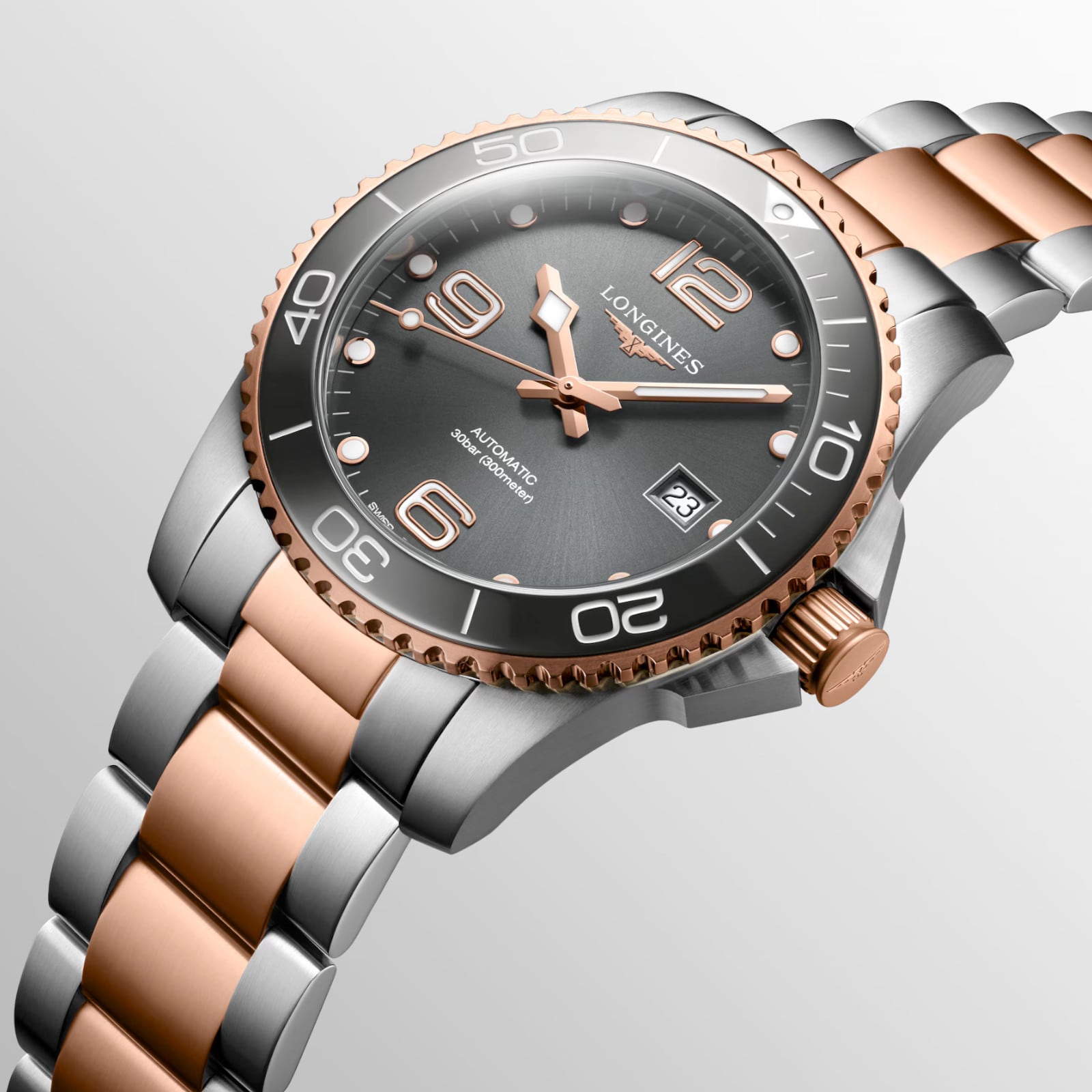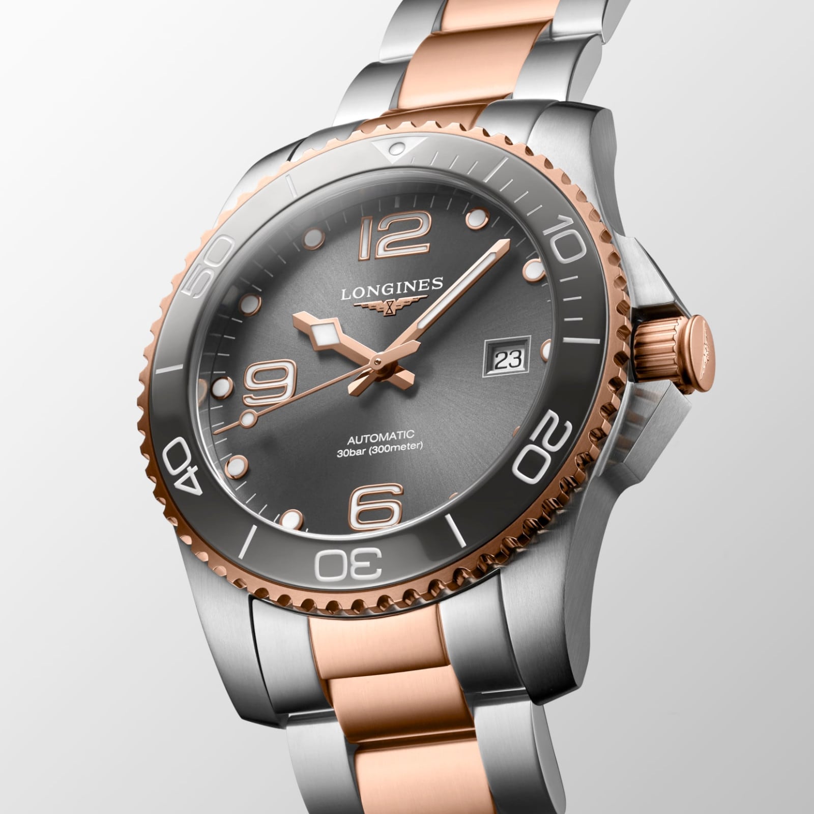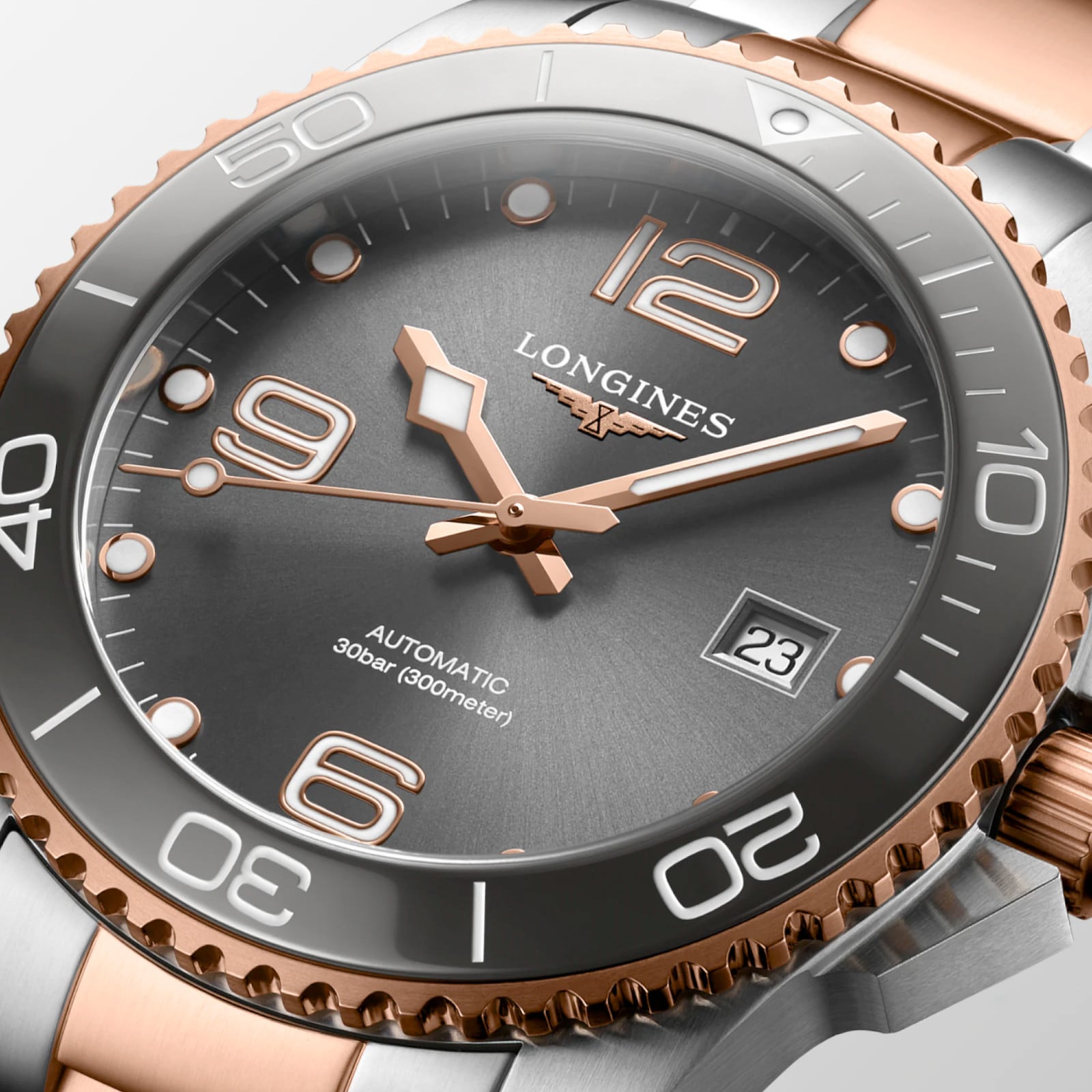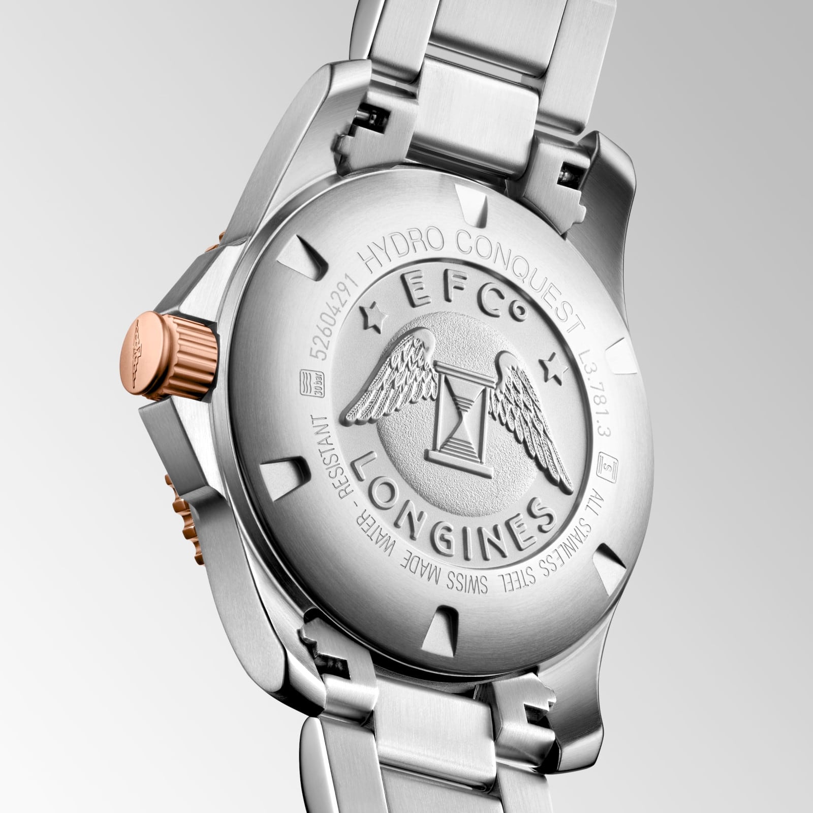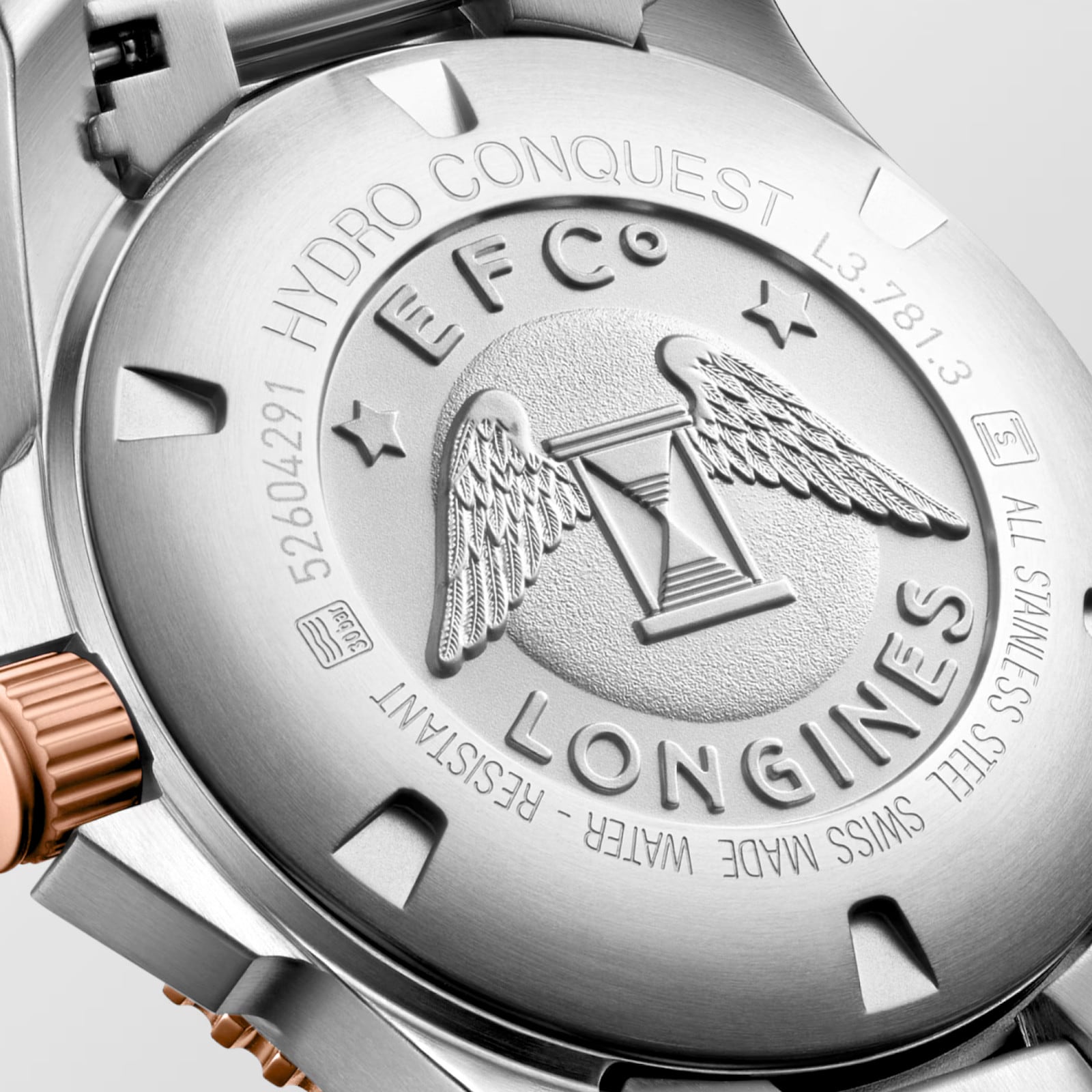 Inspired by the world of water sports, the HydroConquest collection stands out with its daring design. Water-resistant up to 30 bar (300 m) with a unidirectional rotating bezel and screw-down crown and case back, it guarantees exceptional reliability at all times.