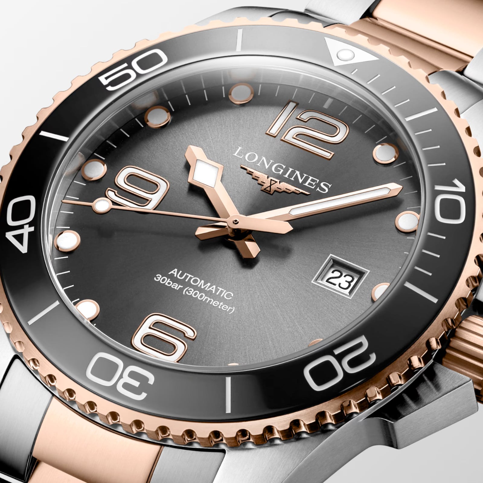 Inspired by the world of water sports, the HydroConquest collection stands out with its daring design. Water-resistant up to 30 bar (300 m) with a unidirectional rotating bezel and screw-down crown and case back, it guarantees exceptional reliability at all times.
