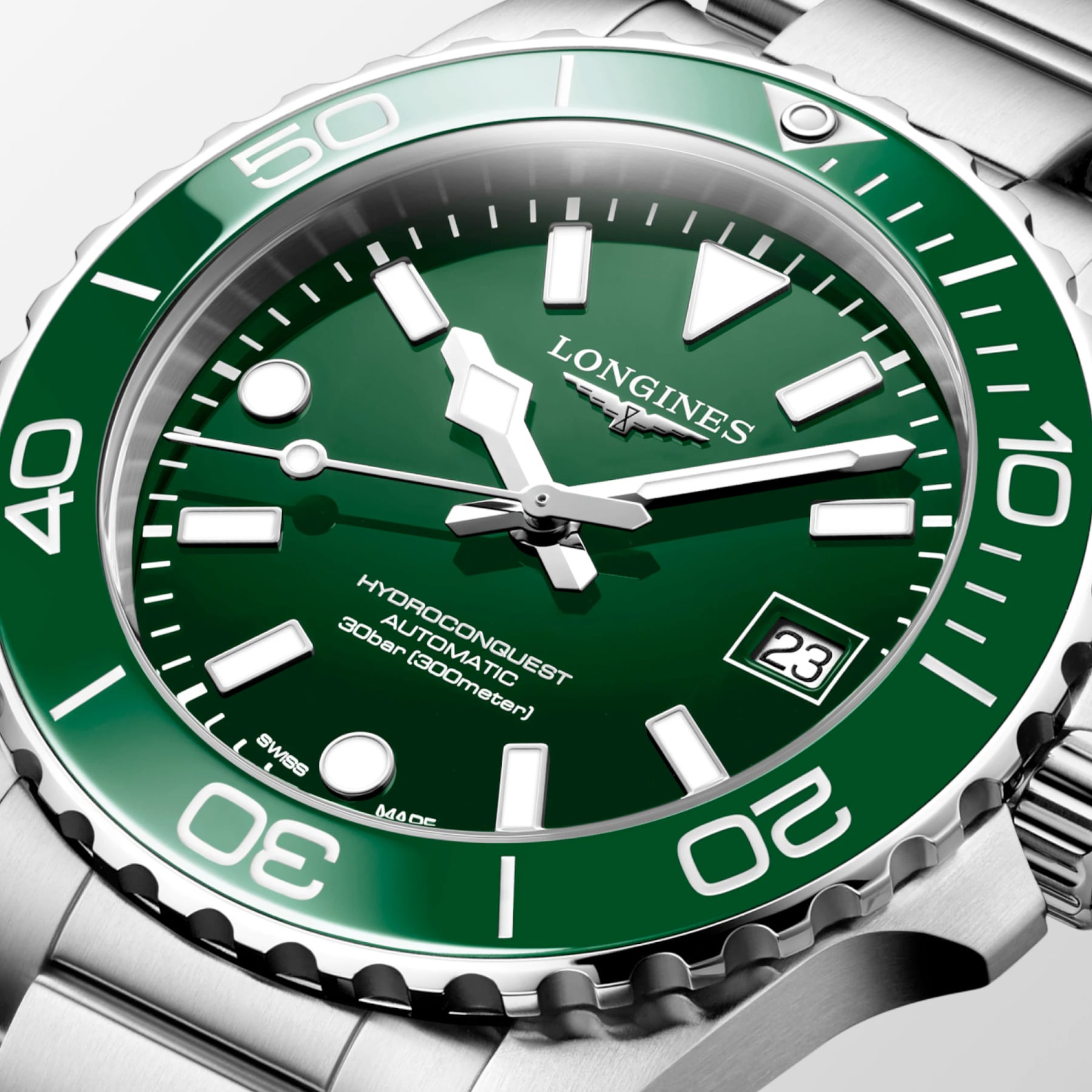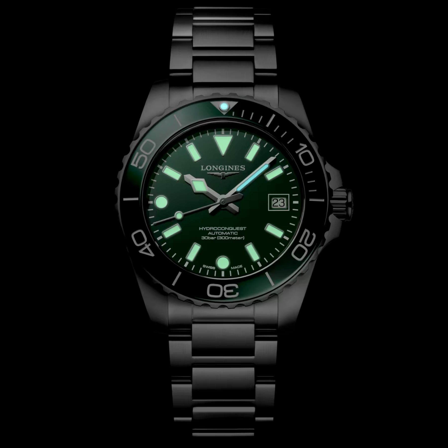Green lacquered polished dial, swiss super-luminova®.