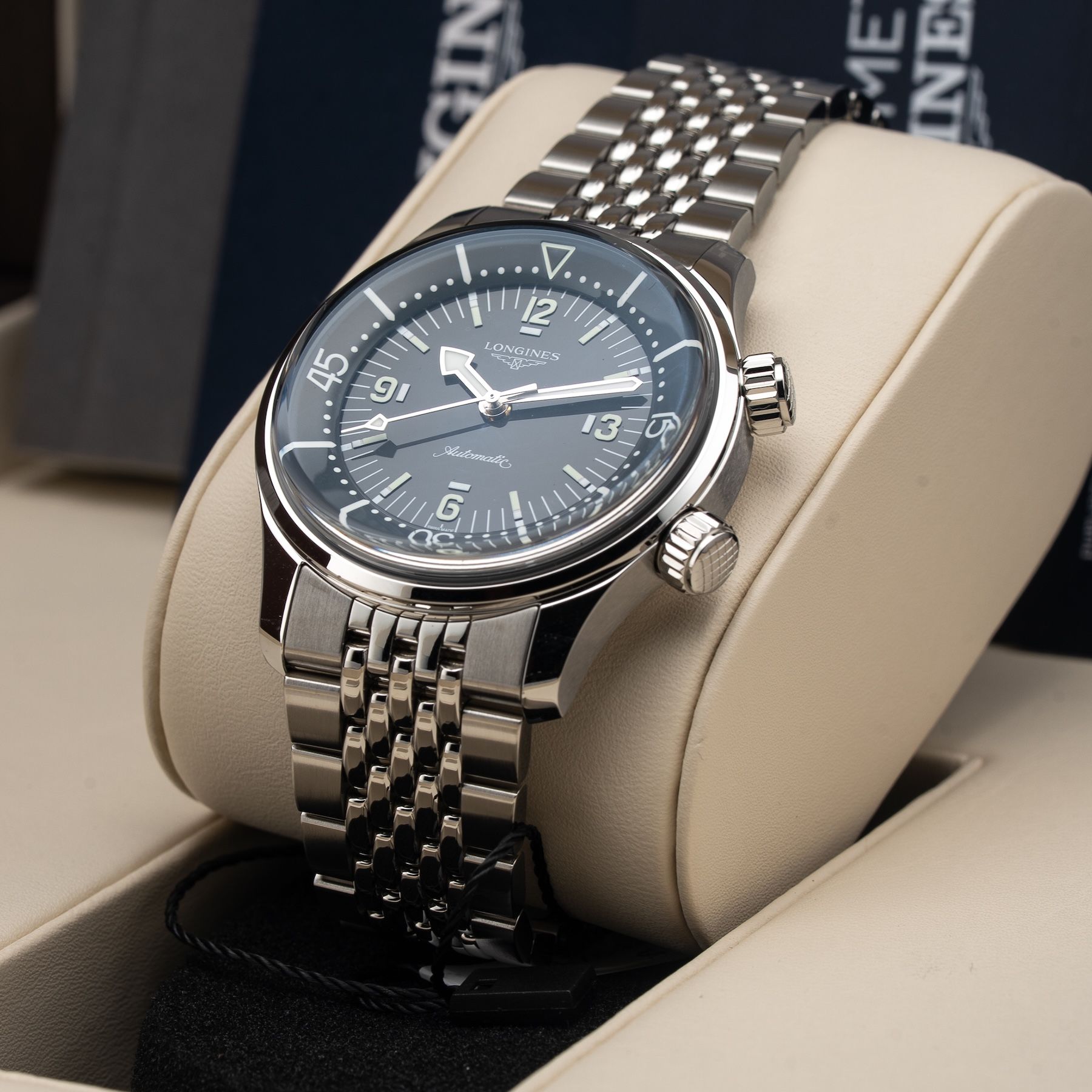 This Longines L3.764.4.99.6 Legend Diver Grey Dial on Bracelet is in GREAT condition, it has box, papers and warranty card. This watch has been fully authenticated and certified by Exquisite Timepieces. Please note, the photos shown are of the actual watch you will receive.