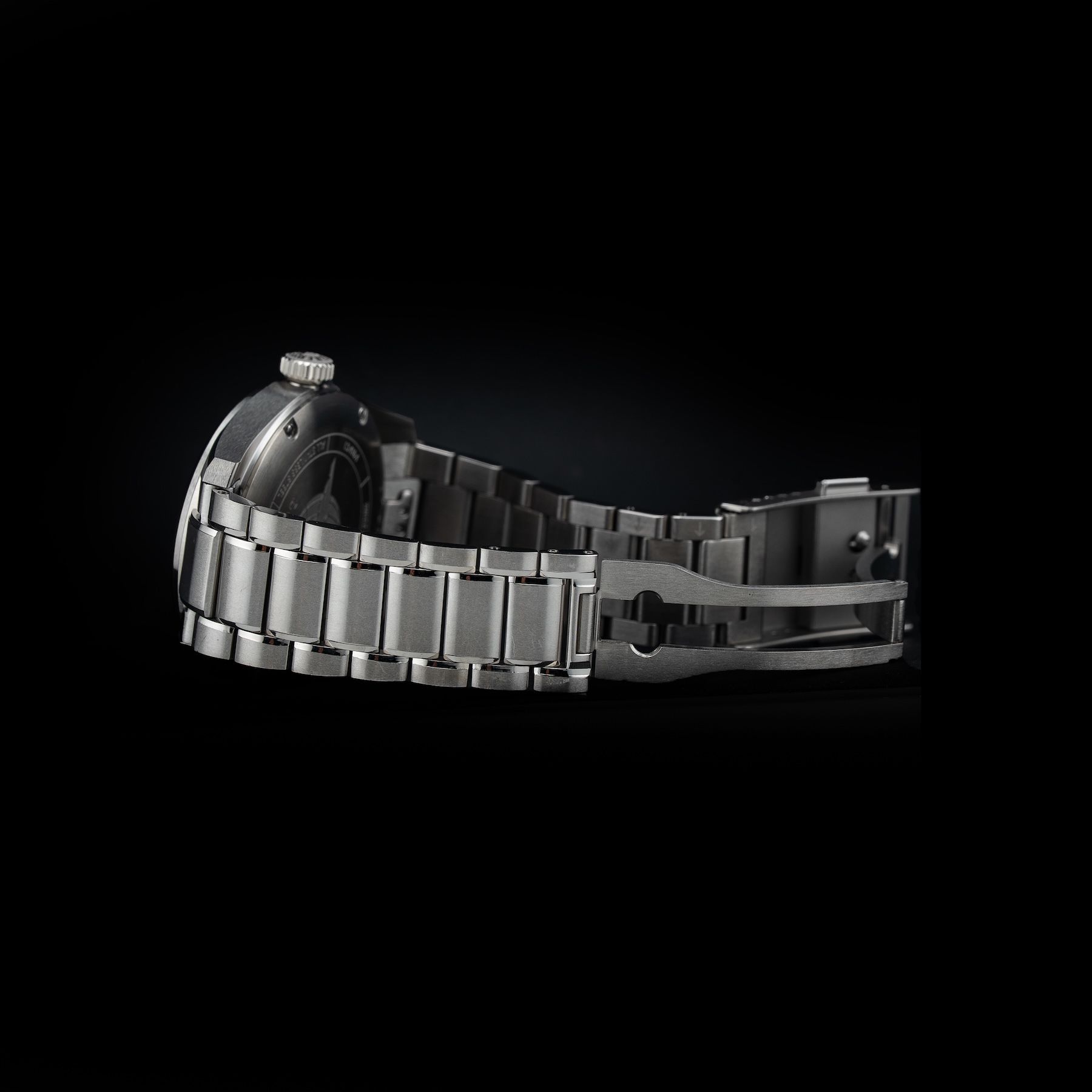 - Stainless steel bracelet, With triple safety folding clasp and push-piece opening mechanism.