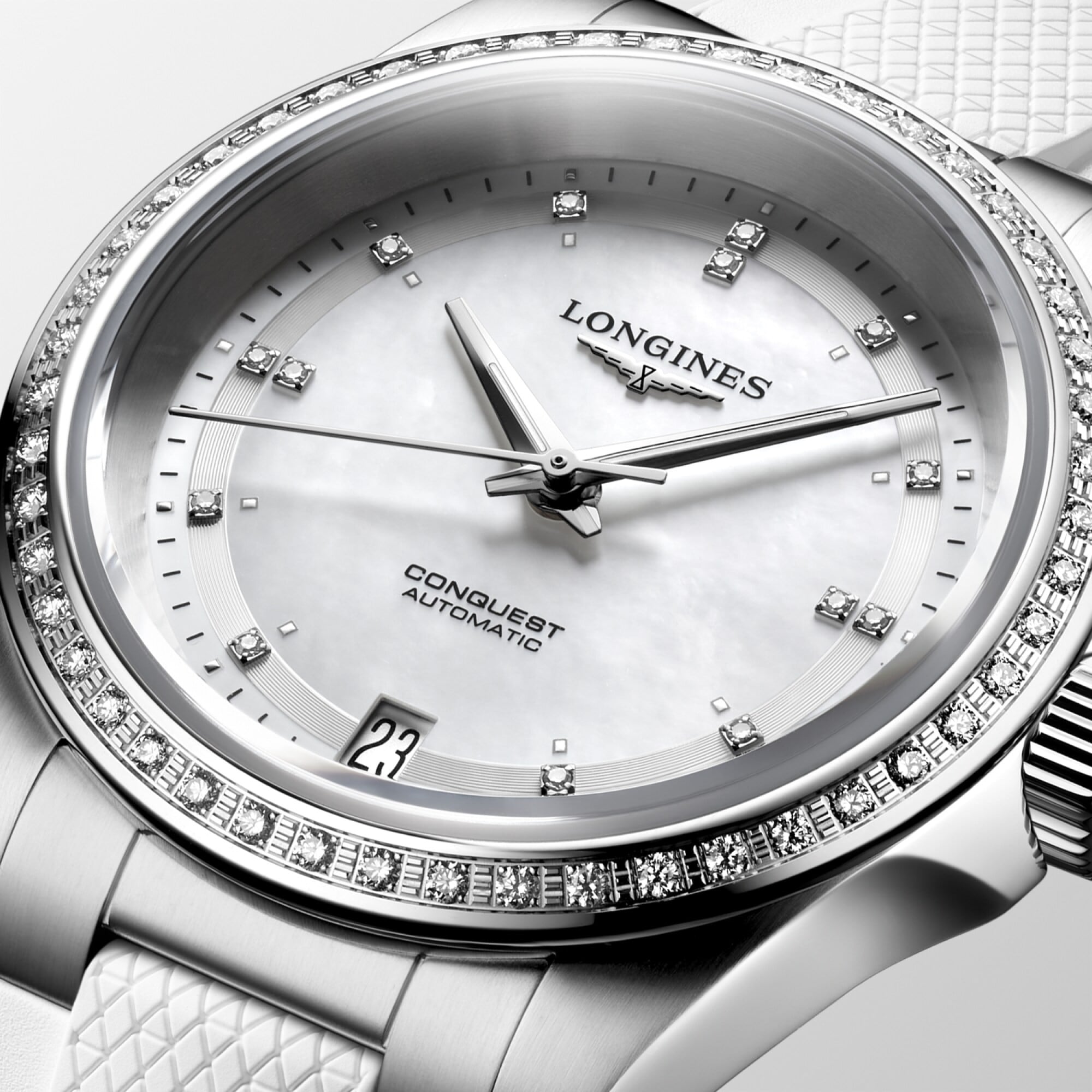 Longines Conquest L3.430.0.87.9 White Mother-of pearl Dial on Strap