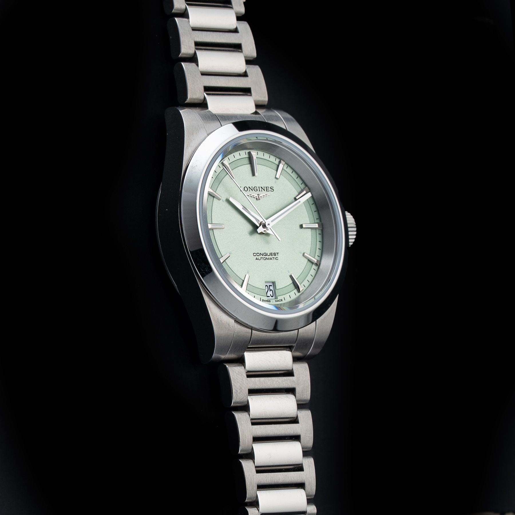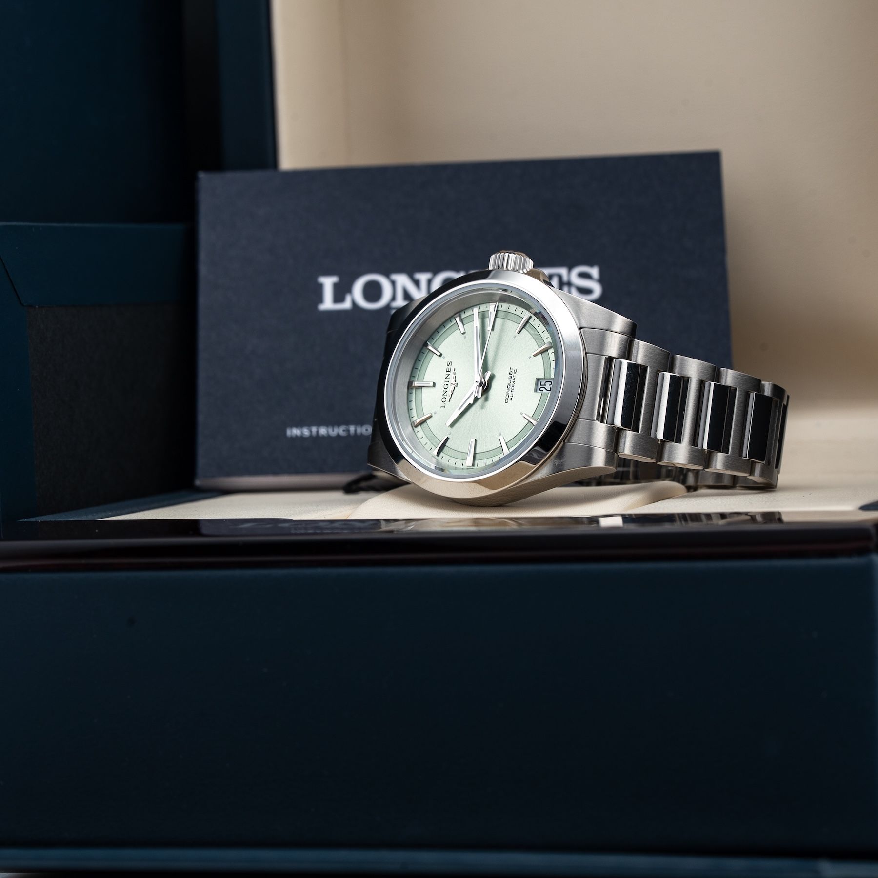 This Longines L3.430.4.02.6 Conquest Sunray Green On Bracelet is in GREAT condition. This watch includes its Original Box Only. This watch has been fully authenticated and certified by Exquisite Timepieces. Please note, the photos shown are of the actual watch you will receive.