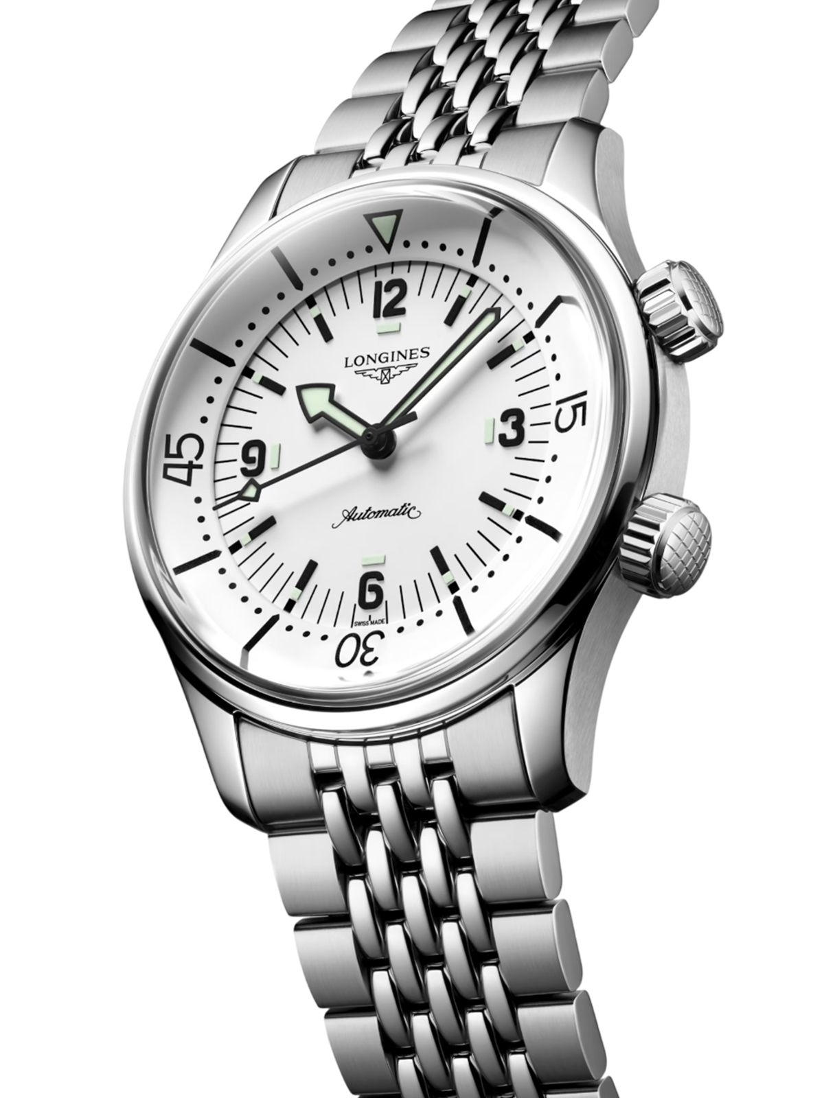 Originally designed for underwater exploration, the LONGINES Legend Diver is equally at home on land or underwater. With its timeless design and cutting-edge performance, it has been a true icon of watchmaking since 1959. At first glance, it is distinctive because of its two crowns and internal rotating bezel. Invented by LONGINES, the position of the bezel inside the case protects it from accidental manipulation and shocks that could alter its settings. These true tool watches are powered by exclusive LONGINES calibres equipped with a silicon balance-spring. The collection is available in a range of sizes, materials and colours.