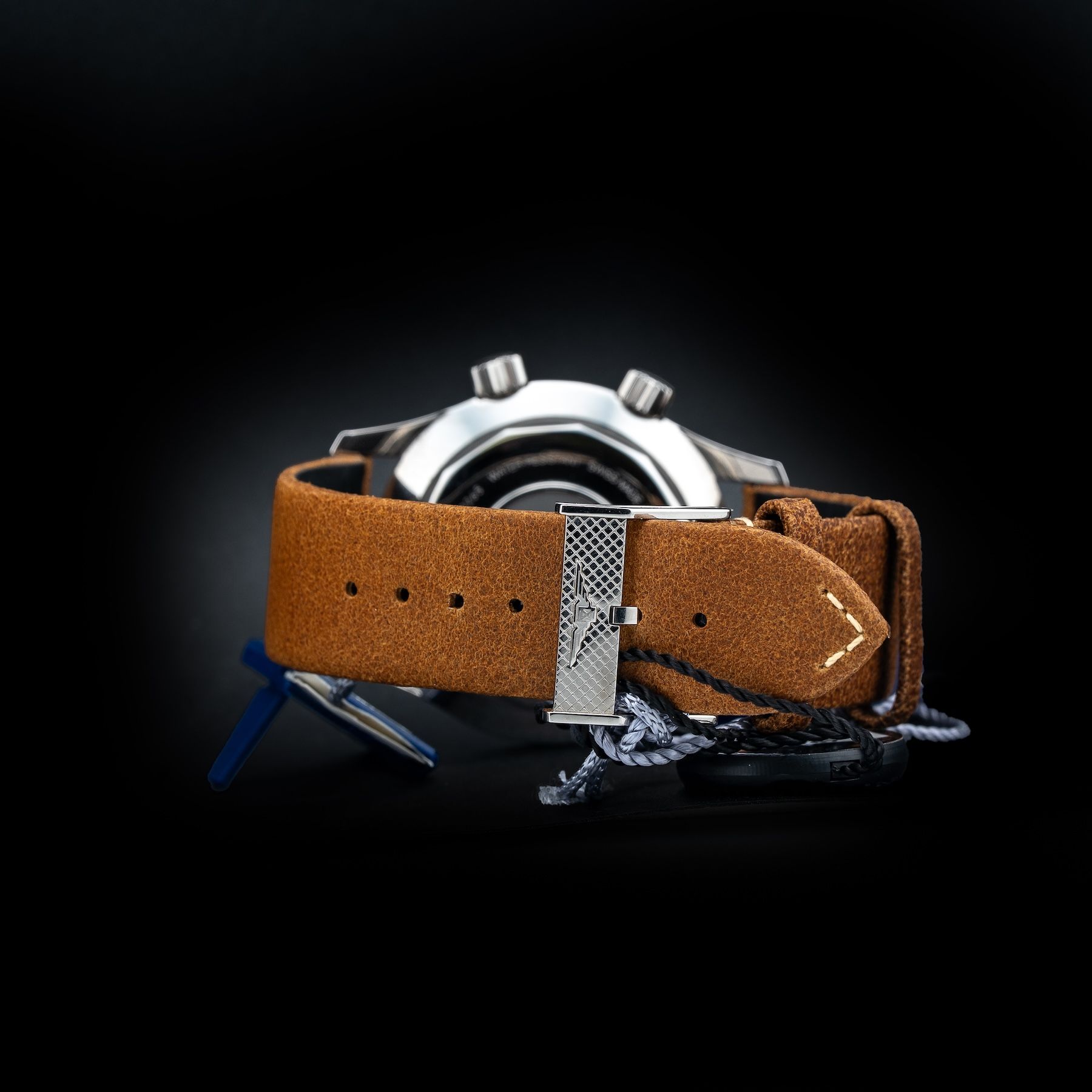This watch features a 42mm stainless steel case on leather strap. This watch also sports a brown dial. Powered by a mechanical automatic movement. Water resistance up to 300 meters.