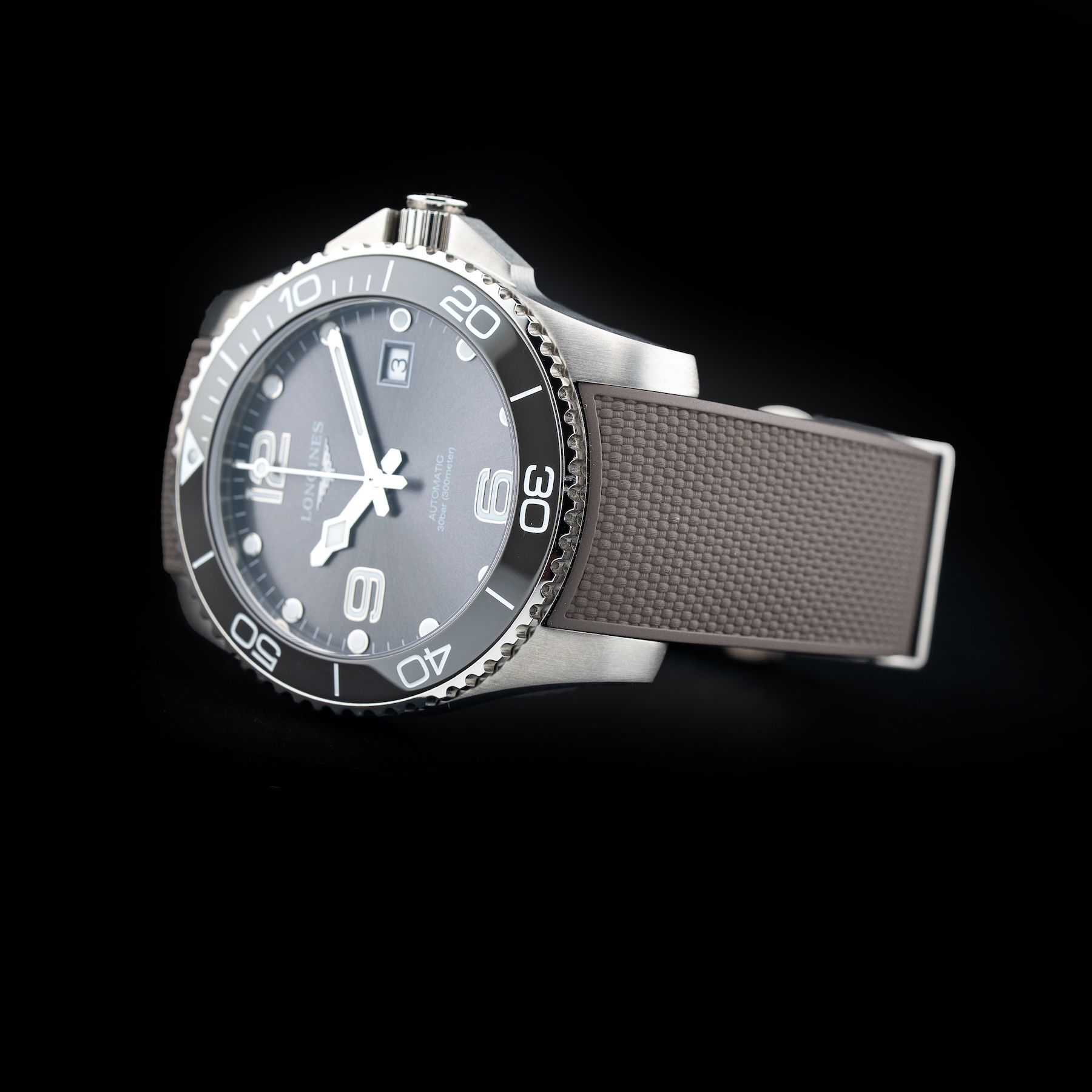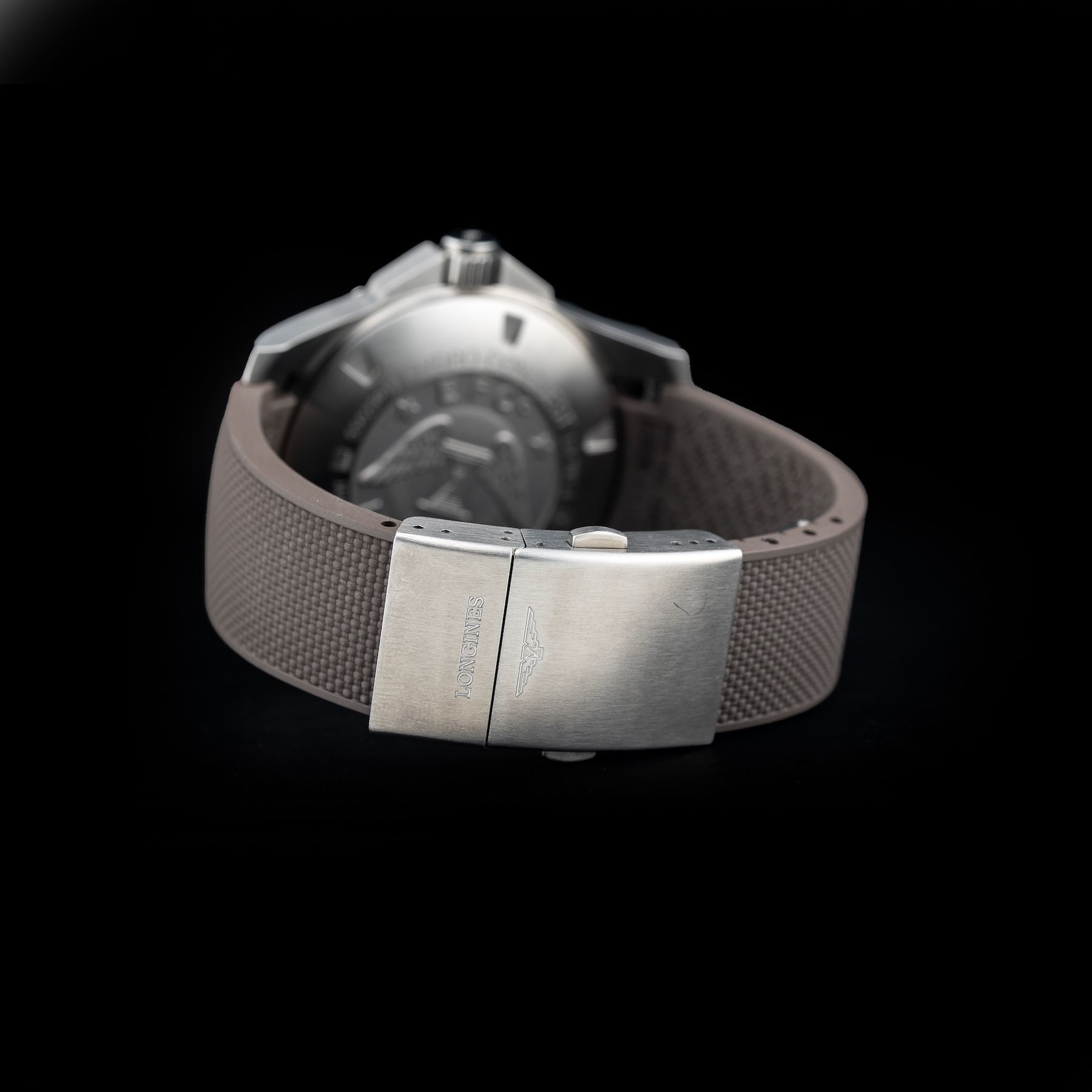 - This timepiece features a 41mm steel case paired with a high quality rubber strap. It showcases a distinctive grey dial and is powered by a precise automatic winding movement. The watch is designed with a water resistance of up to 300m.