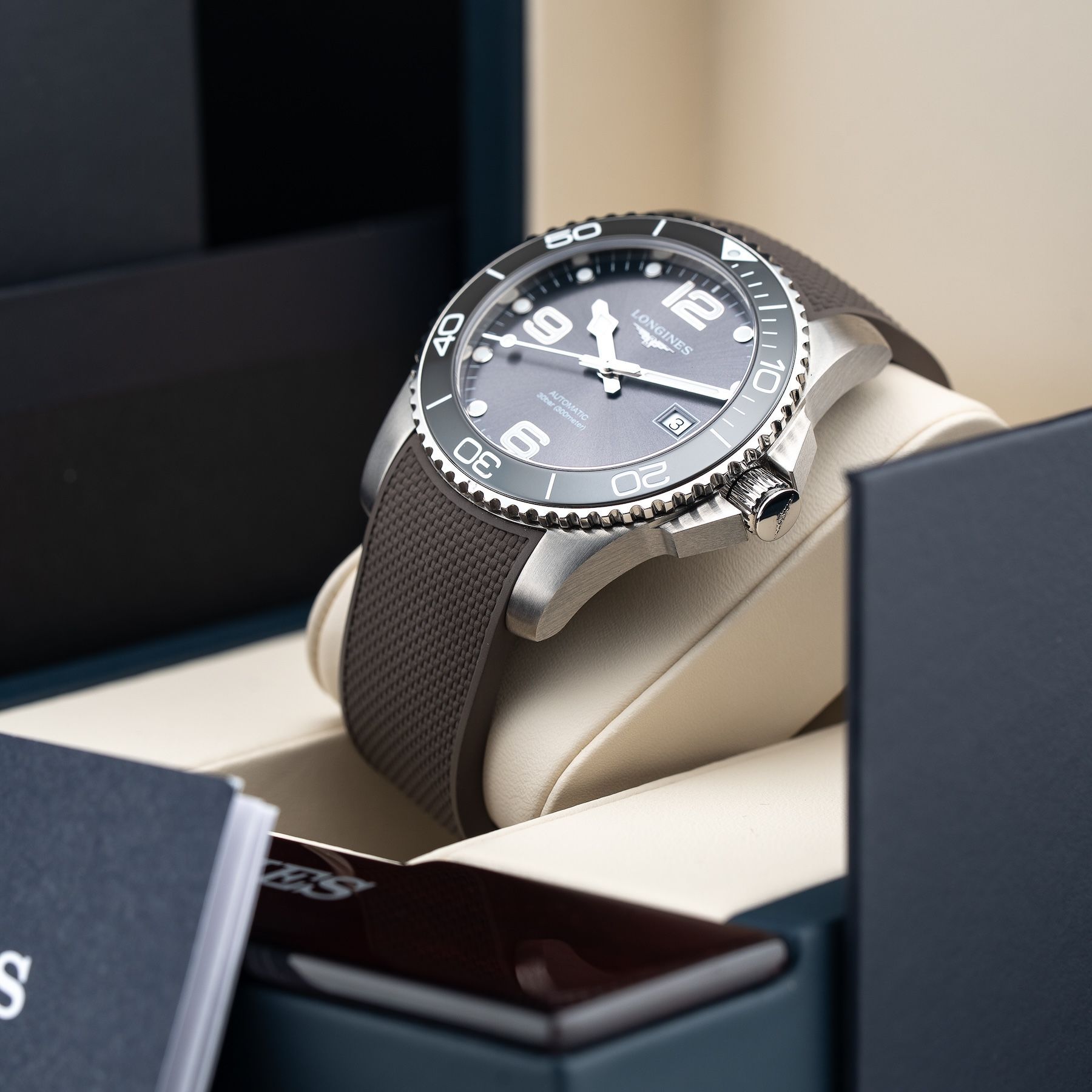 This Longines L3.781.4.76.9 HydroConquest is in GREAT condition, it has box. No warranty card. This watch has been fully authenticated and certified by Exquisite Timepieces. Please note, the photos shown are of the actual watch you will receive.