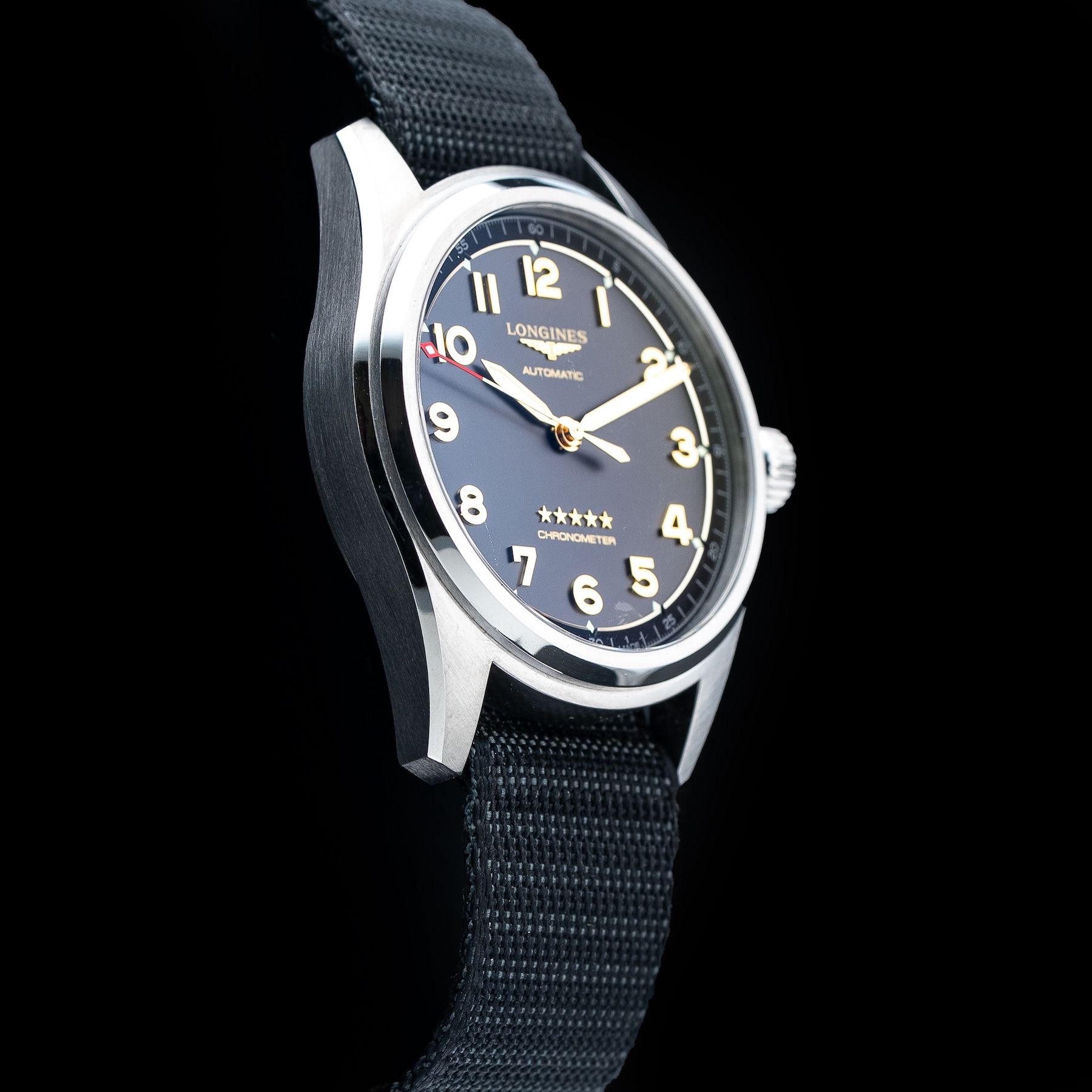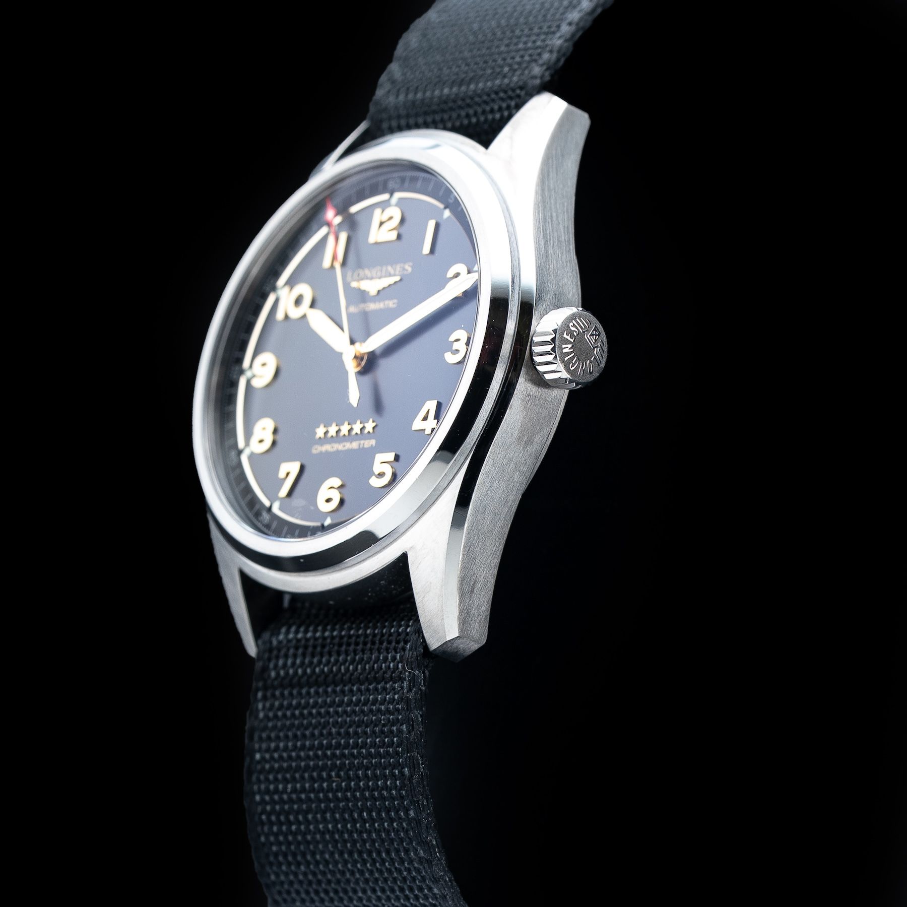 This watch features a 40mm stainless steel case on nylon strap. This watch also sports a grey matt dial. Powered by a self-winding movement. Water resistance up to 100 meters.