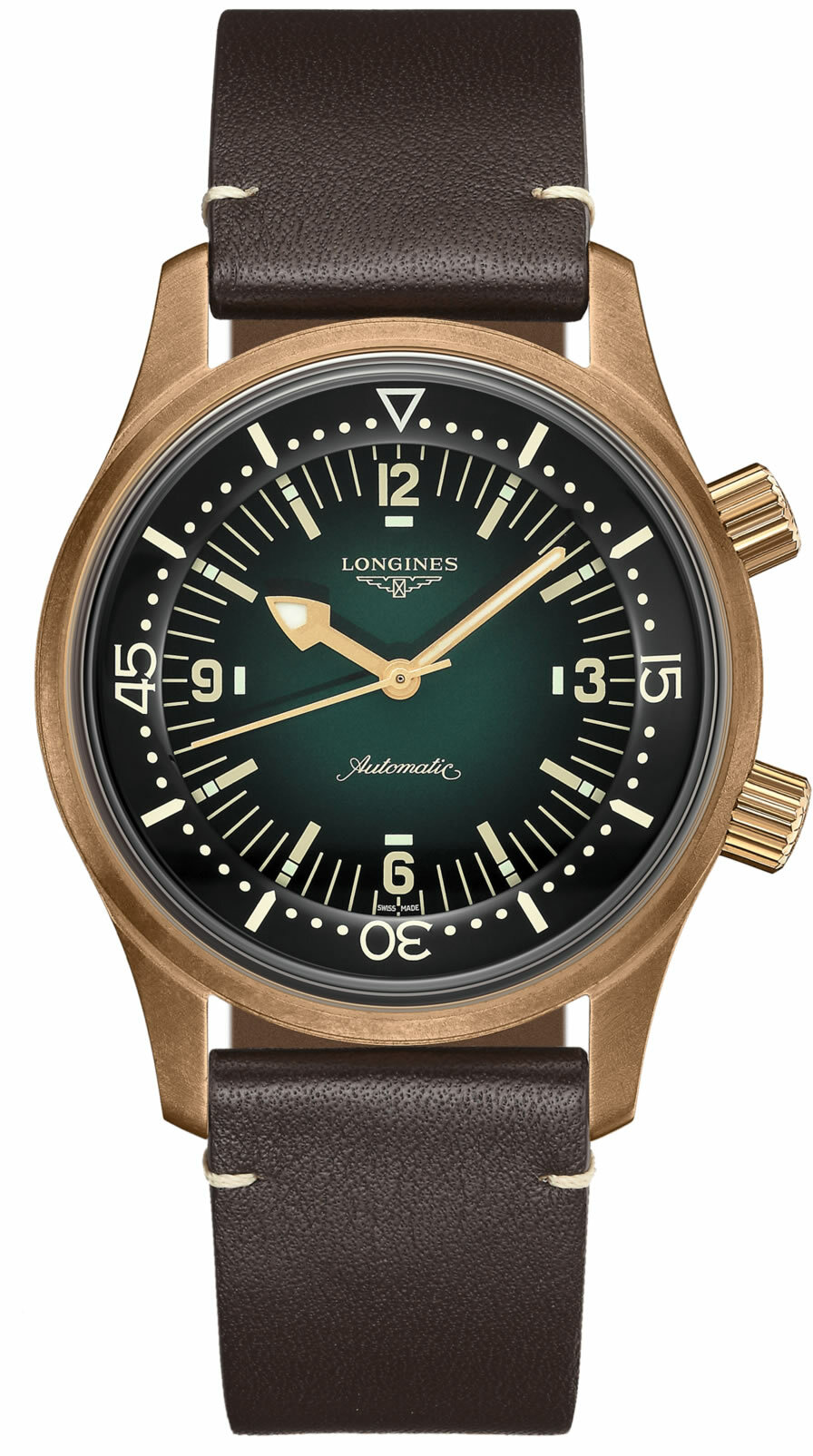 - This timepiece features a 42mm bronze case paired with a high quality leather strap. It showcases a distinctive green dial and is powered by a precise automatic winding movement. The watch is designed with a water resistance of up to 300m.