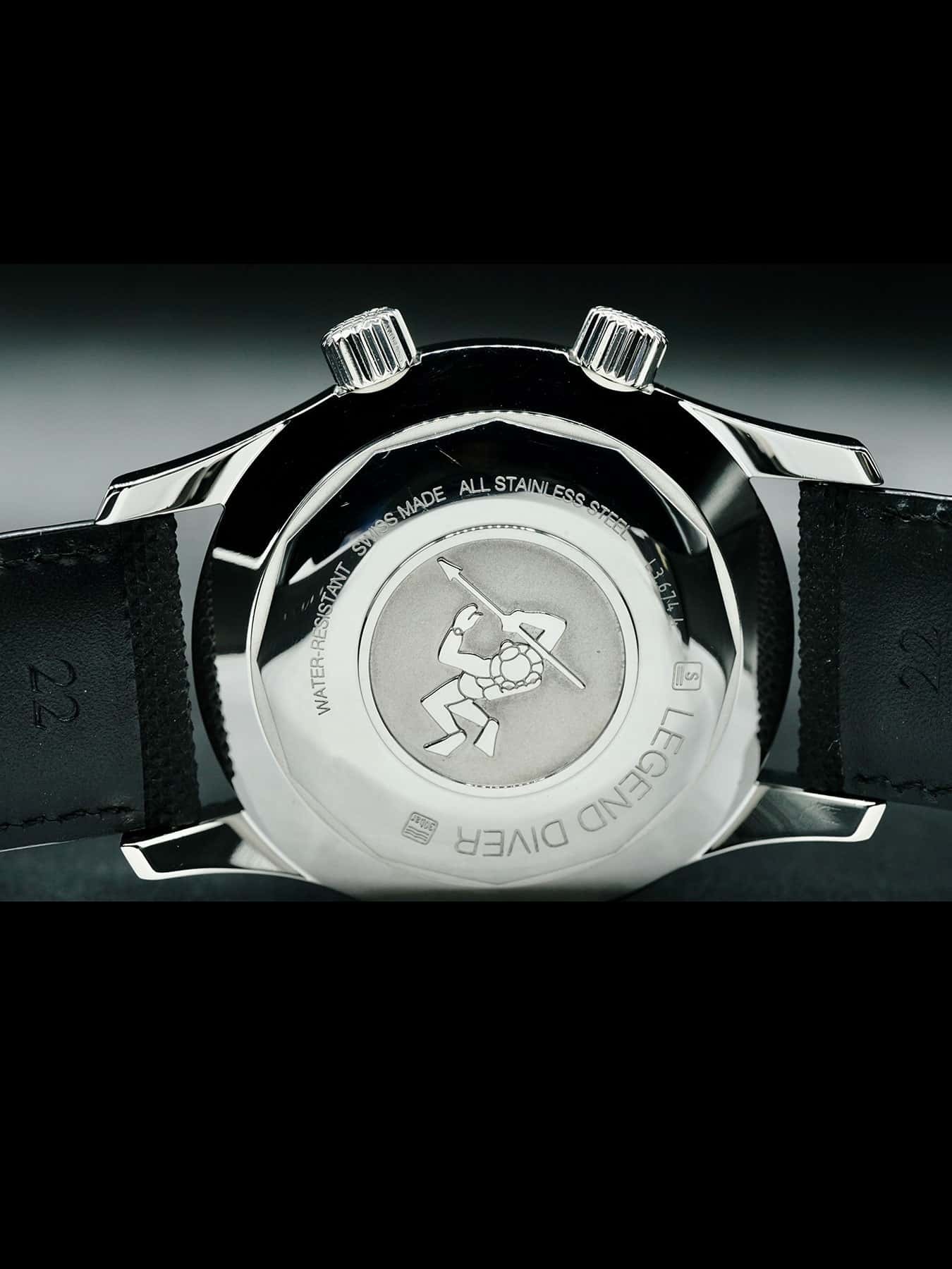 This Longines Legend Diver on Strap features a 42mm stainless steel case, screw-down case back, on black leather strap. This watch also sports a black dial with luminous hands and luminous indexes, it is covered by scratch resistant sapphire crystal.